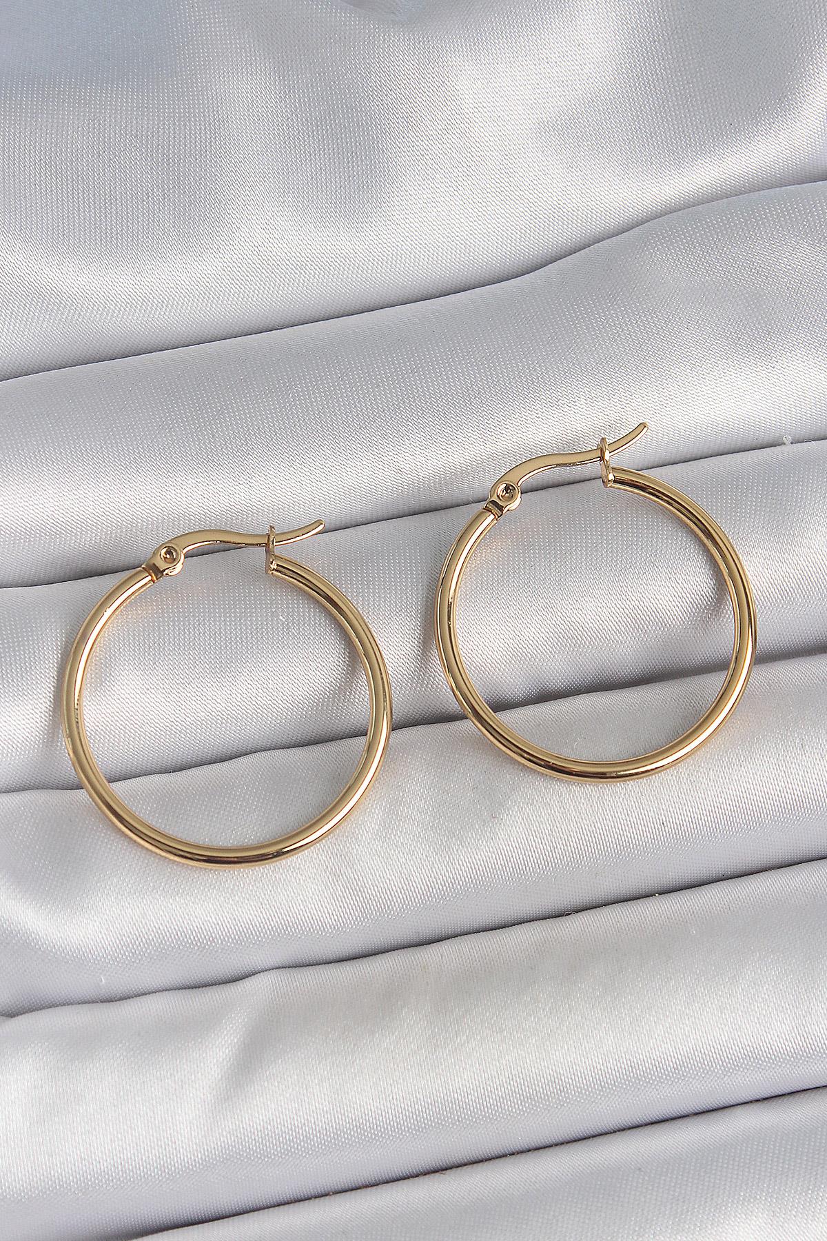 316 Çelik Gold Renk 27 mm Halka Model Kadın Küpe