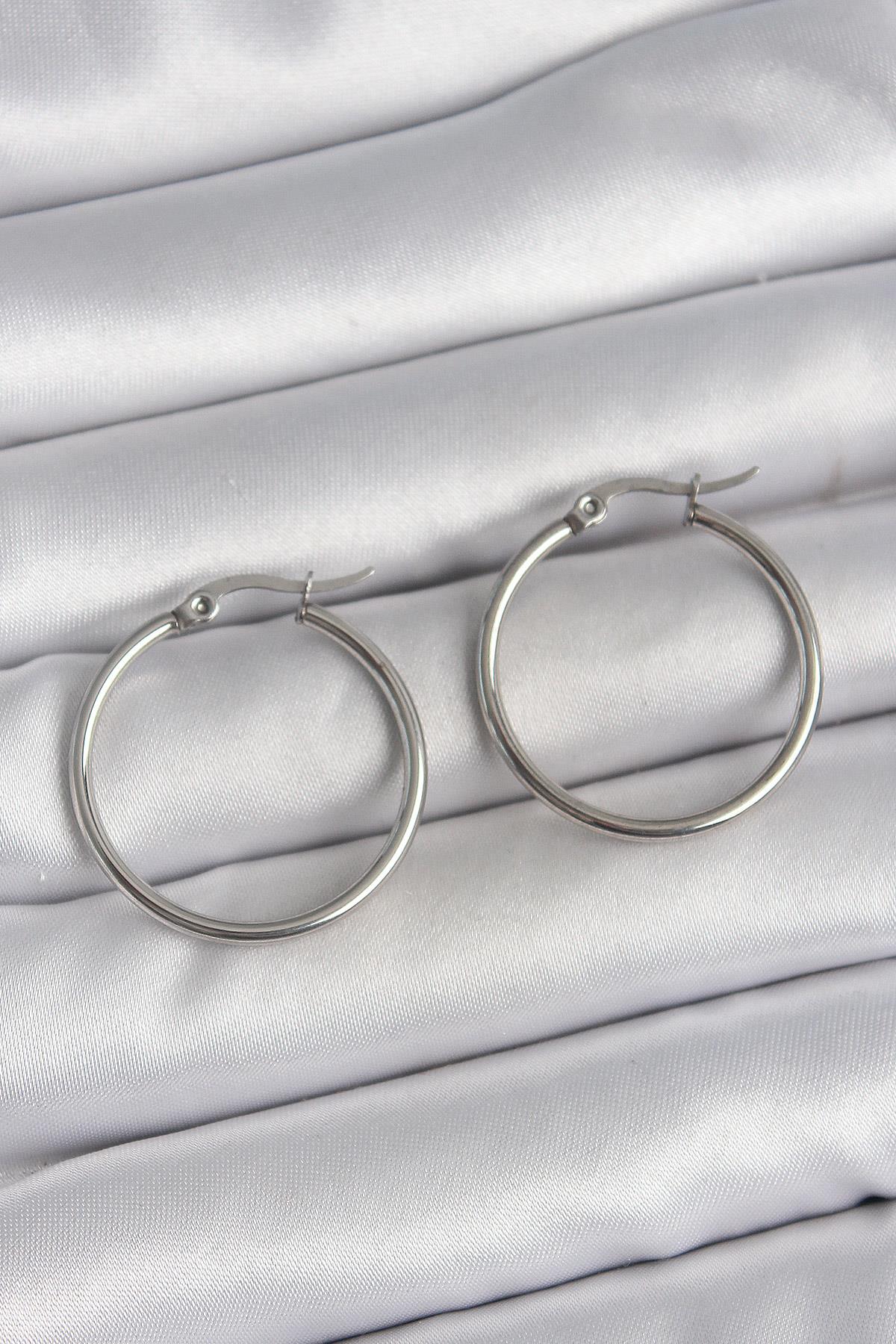 316 Çelik Gümüş Renk 27 mm Halka Model Kadın Küpe
