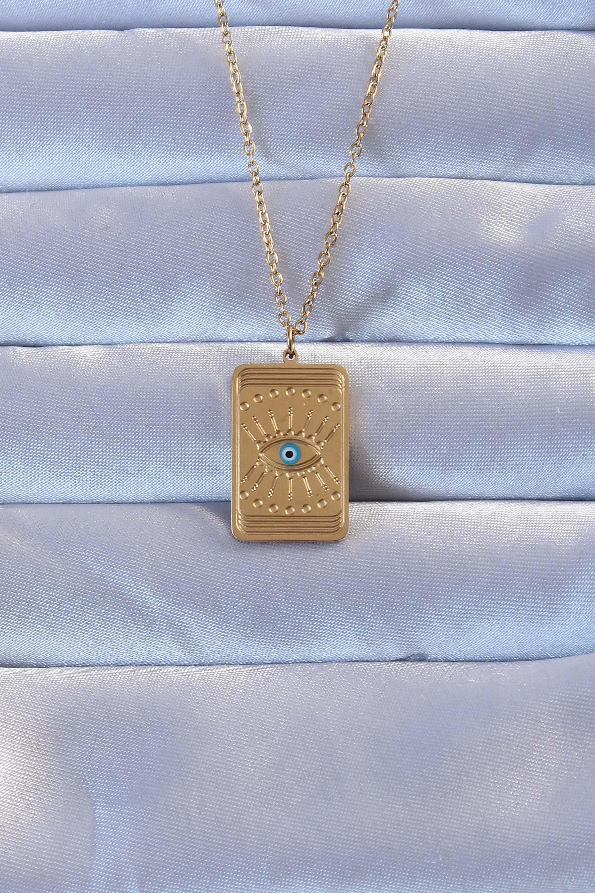 316L Altın Renk İşlemeli Nazarlı Göz Model Vintage Kolye