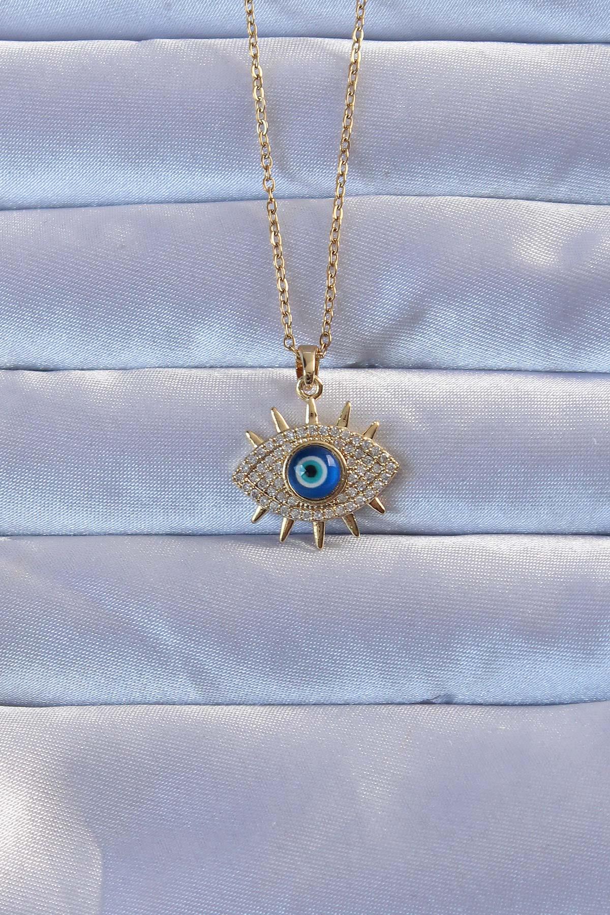 316L Altın Renk Zirkon Taşlı Nazarlı Göz Kolye