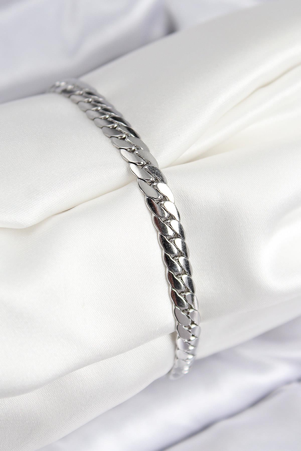 316L Çelik Ezme Zincir Model Gümüş Renk Kadın Bileklik