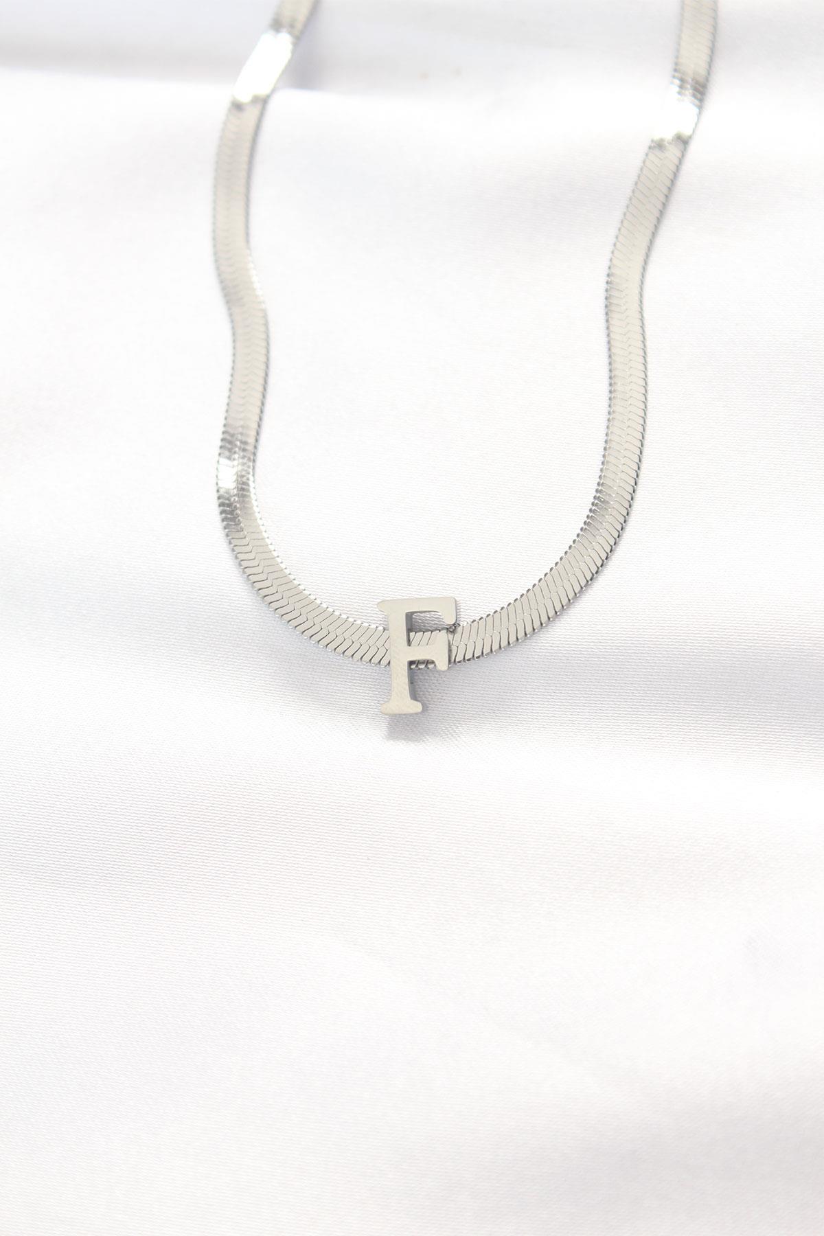 316L Çelik F Harfli Silver Renk İtalyan Zincirli Kolye
