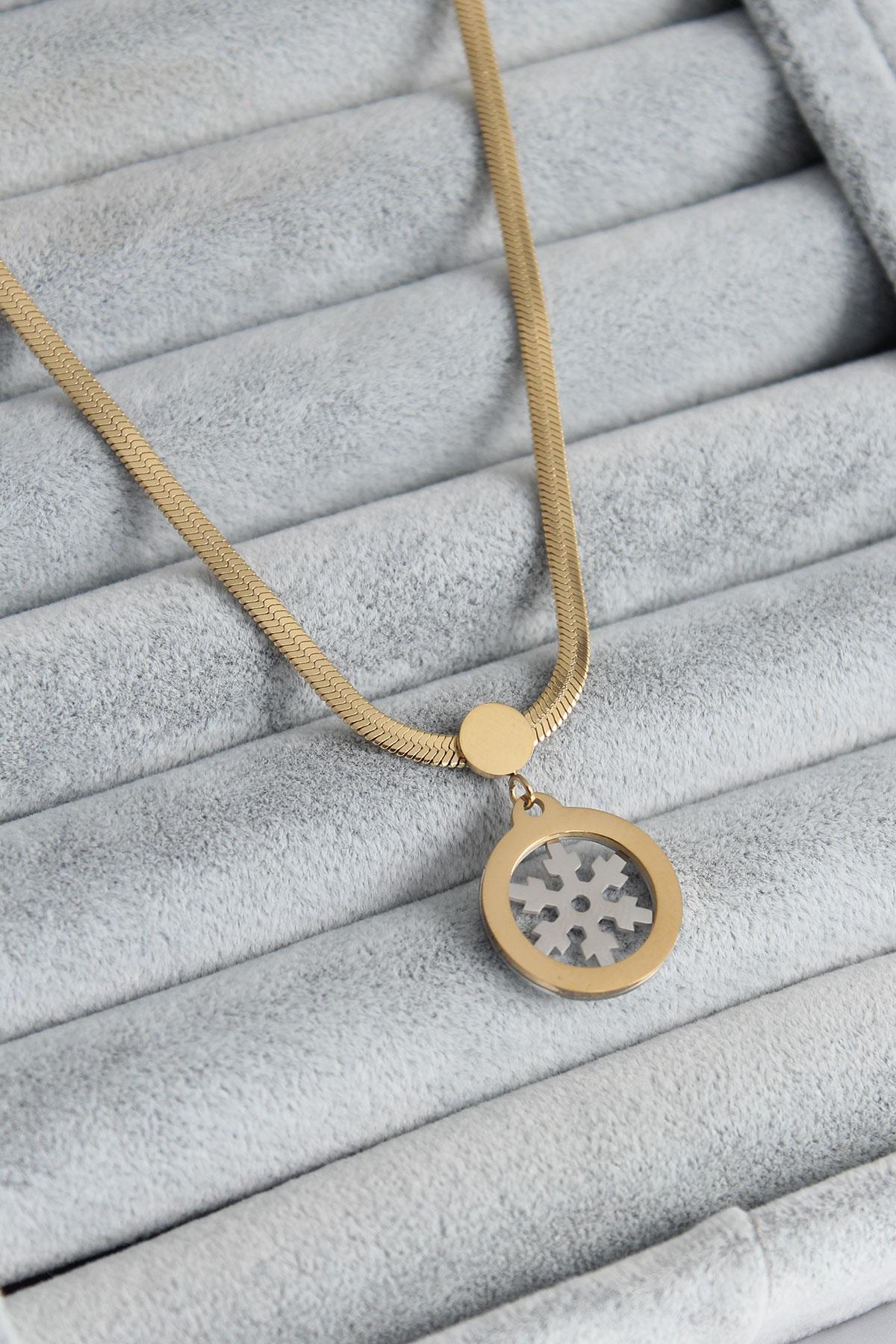 316L Çelik Gold Renk İtalyan Zincir Model Gümüş Kar Tanesi Figür Kadın Kolye
