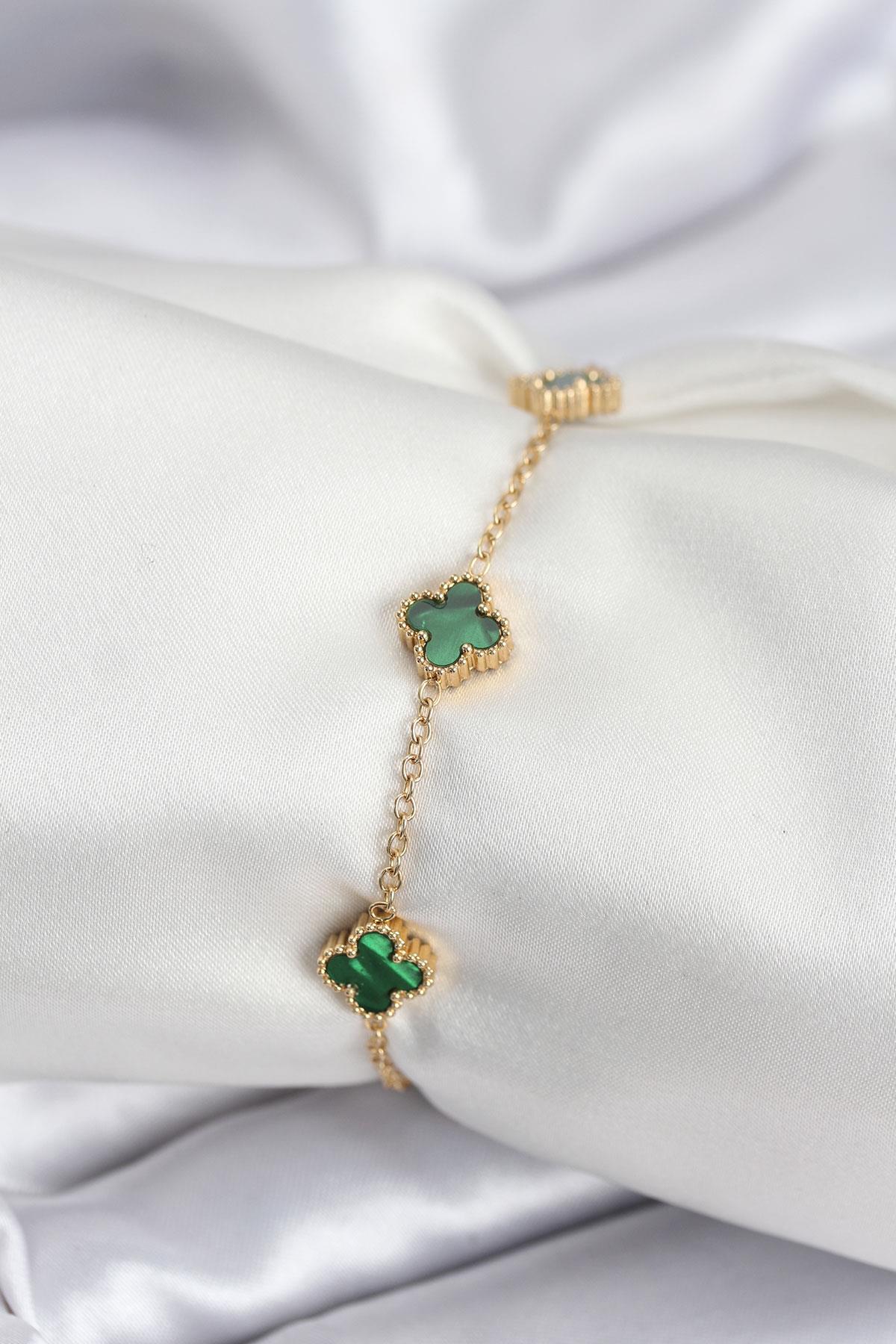 316L Çelik Gold Renk Yeşil Baby Boy Yonca Kadın Bileklik