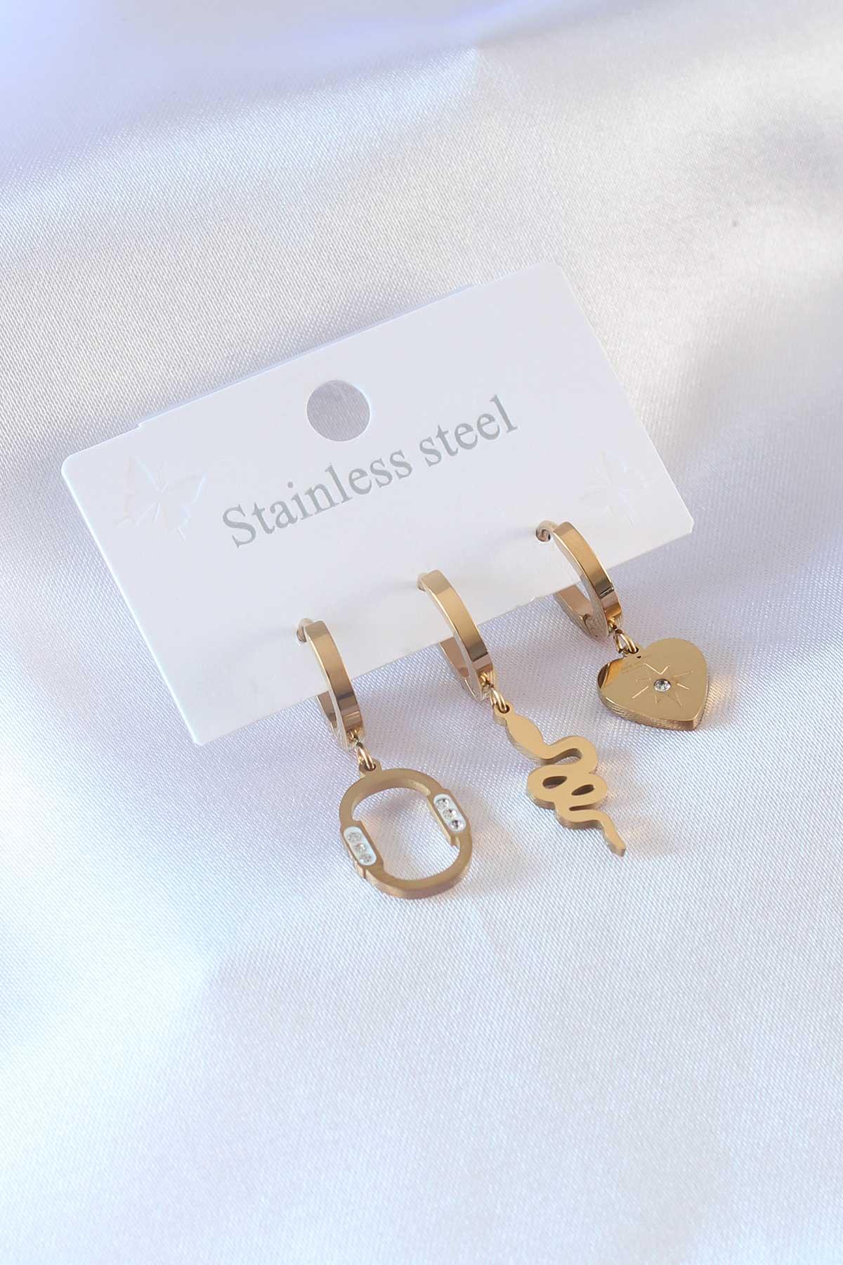 316L Çelik Gold Renk Yılan Model Kalp Detay Zirkon Taşlı Kadın Küpe
