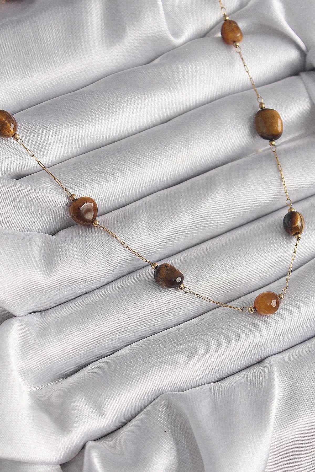 316L Çelik Gold Renk Zincir Kahvrengi Doğaltaş Model Kadın Kolye