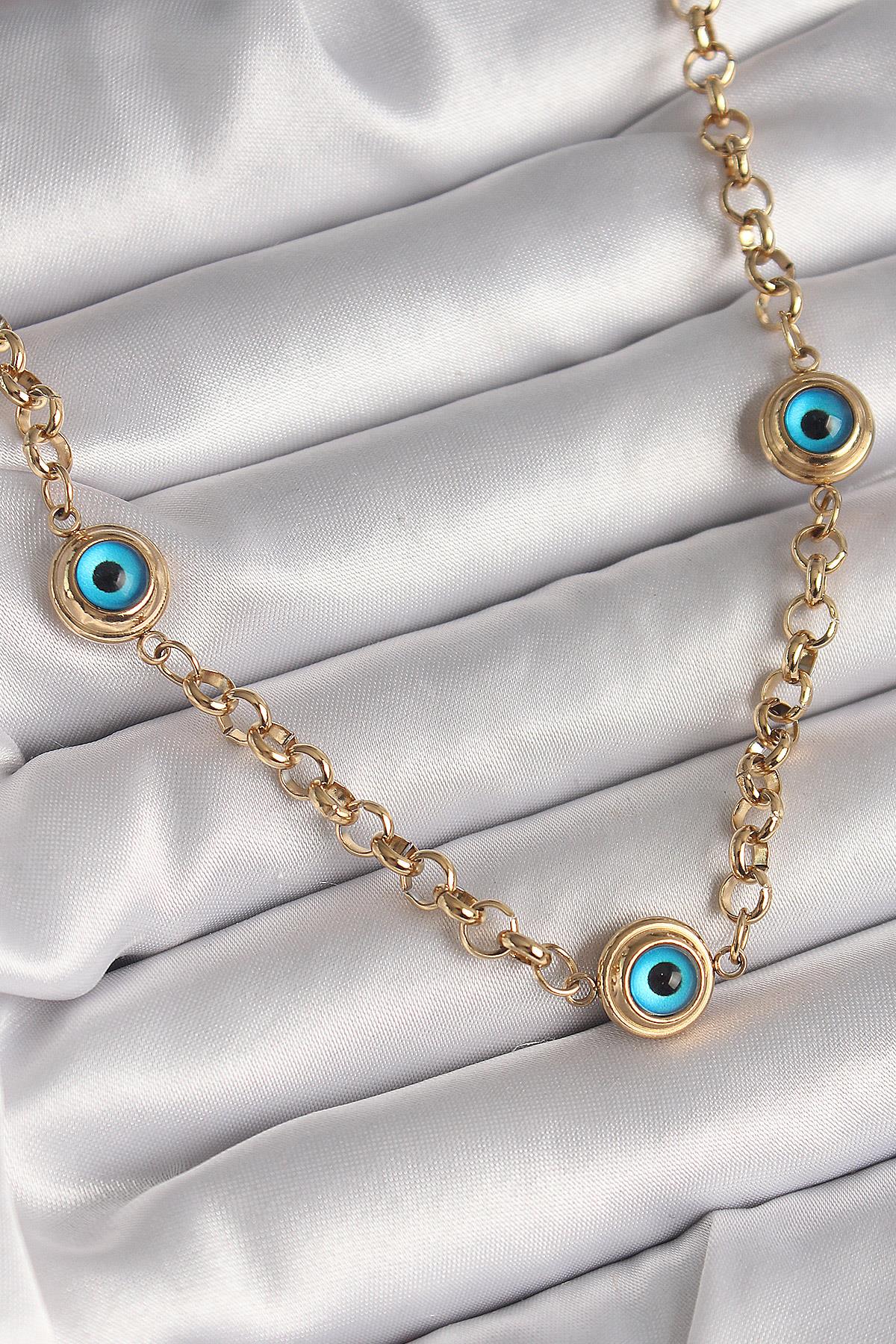 316L Çelik Gold Renk Zincir Nazar Boncuk Model Kadın Kolye