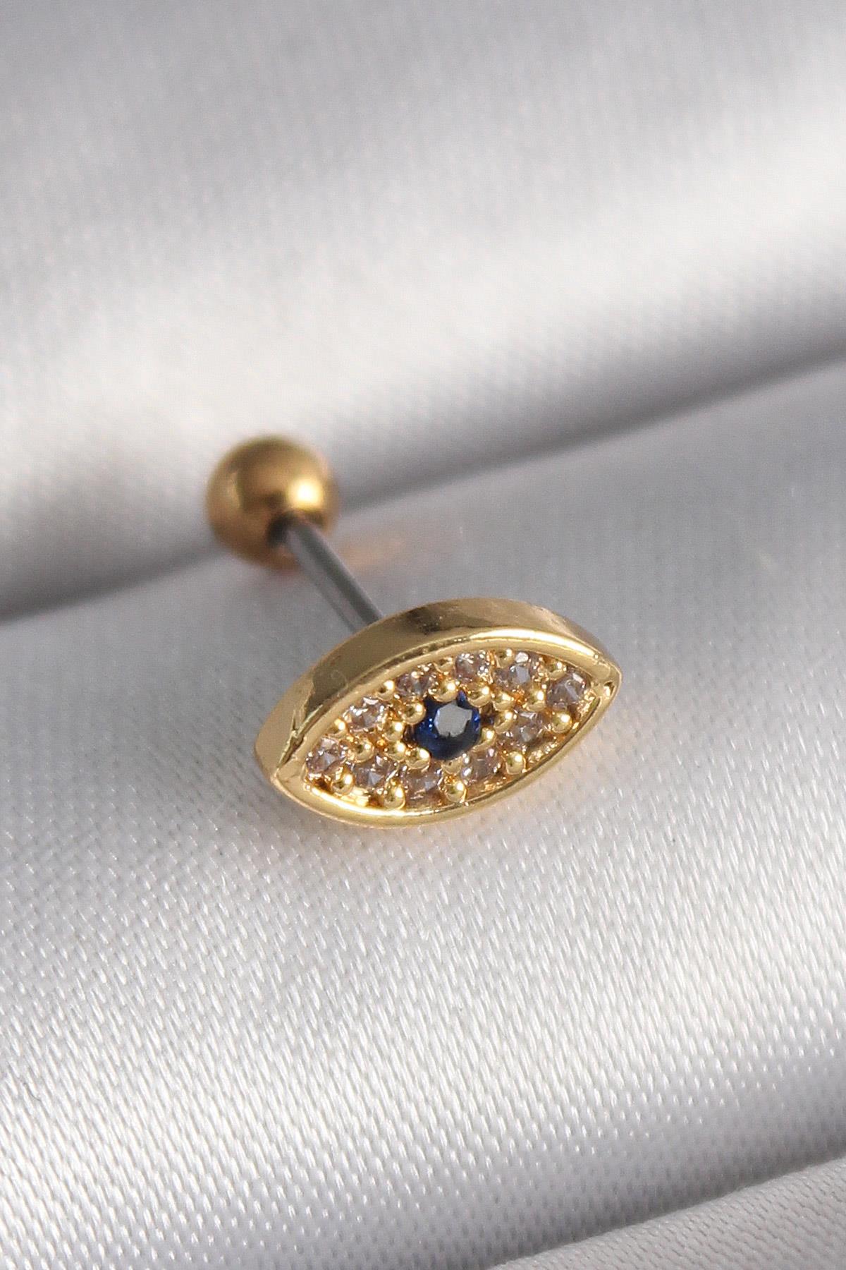 316L Çelik Gold Renk Zirkon Taşlı Göz Tragus Piercing
