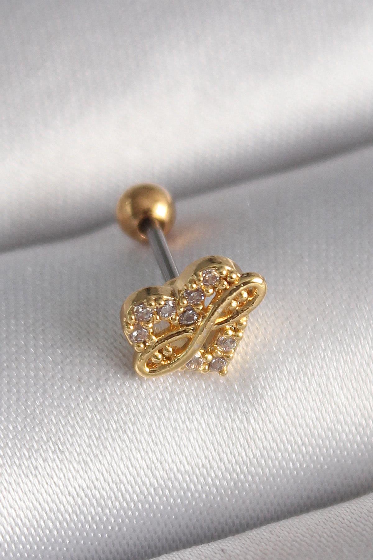 316L Çelik Gold Renk Zirkon Taşlı Kalp Sonsuzluk Detay Tragus Piercing