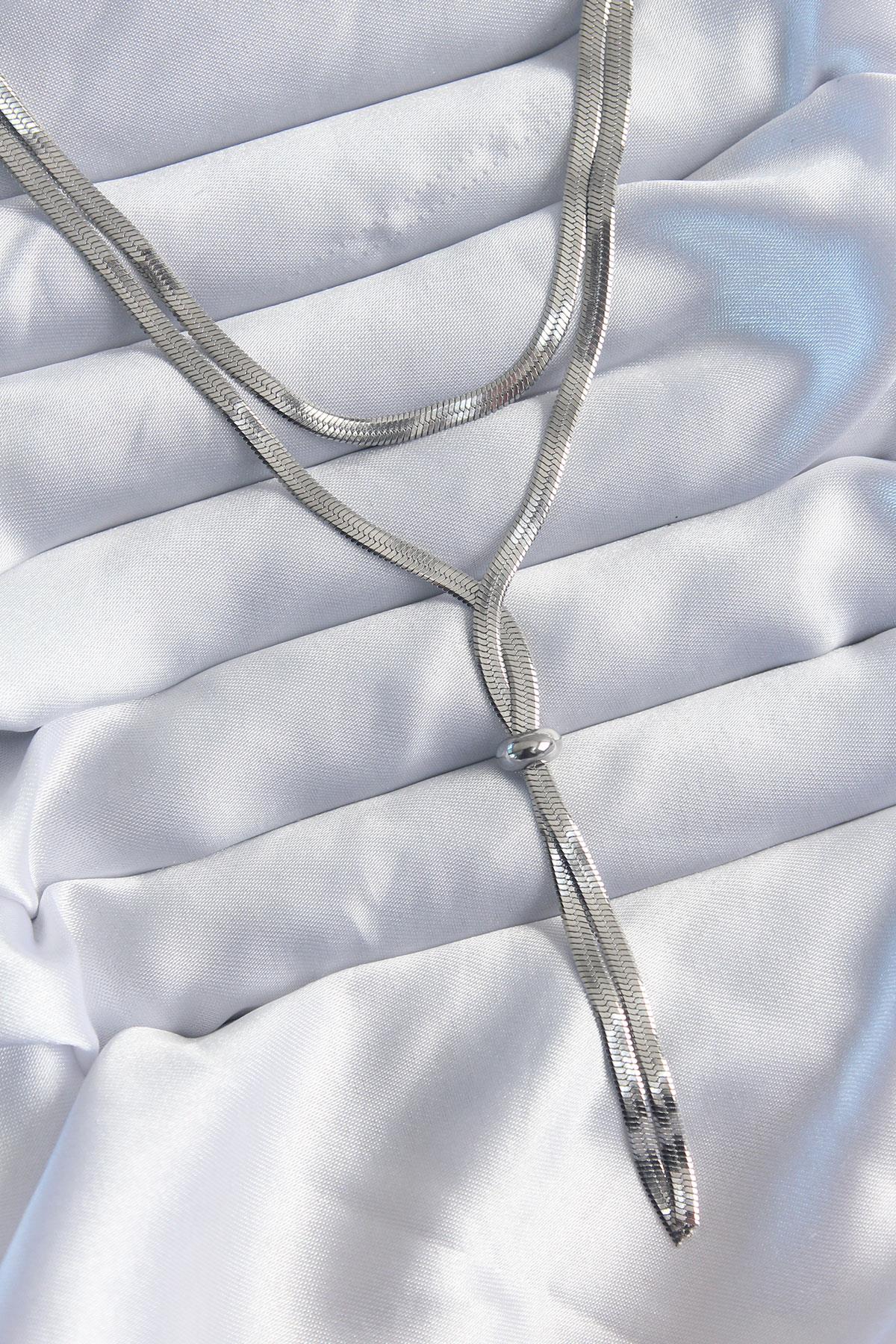 316L Çelik Gümüş Renk 2'li İtalyan Zincir Asansör Model Kadın Kolye