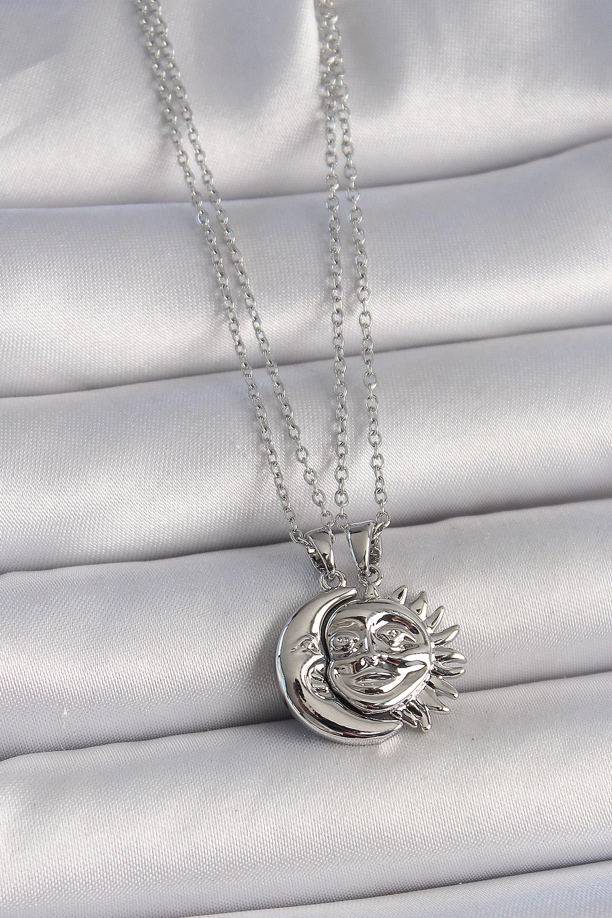 316L Çelik Gümüş Renk Ay Güneş Model Arkadaşlık Kadın Kolye