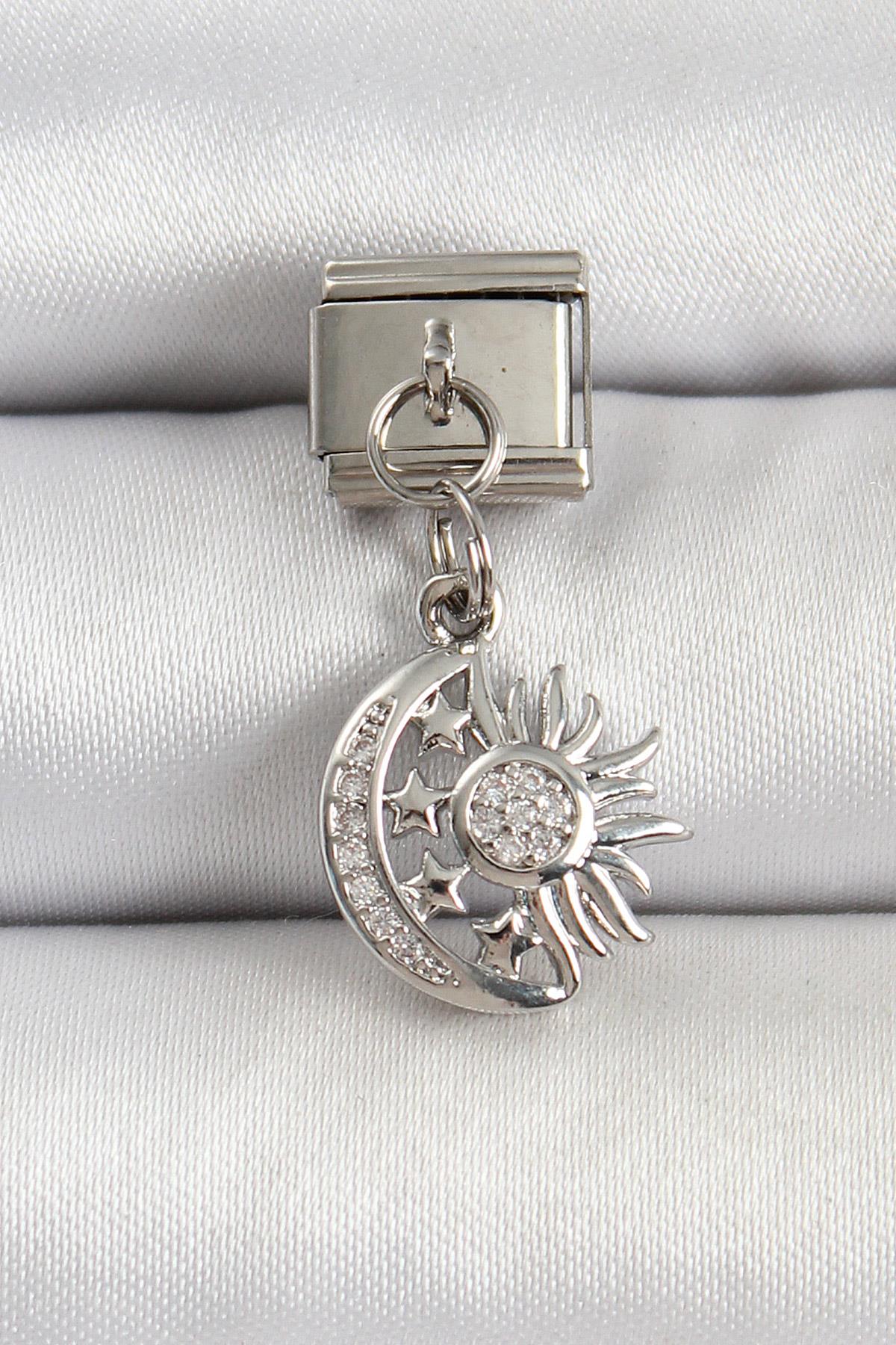 316L Çelik Gümüş Renk Ay ve Güneş Model Nomination Charm