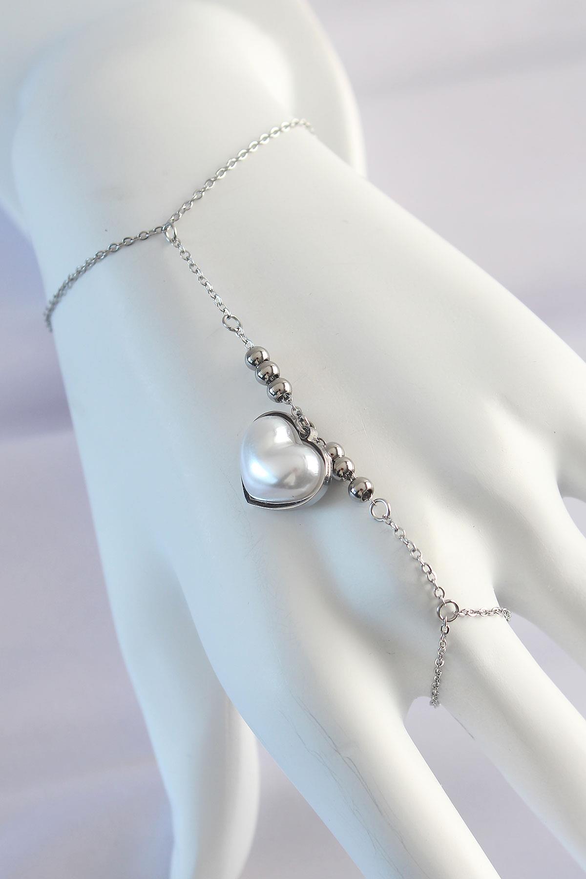 316L Çelik Gümüş Renk Beyaz Bubble Kalp Tasarımlı Şahmeran