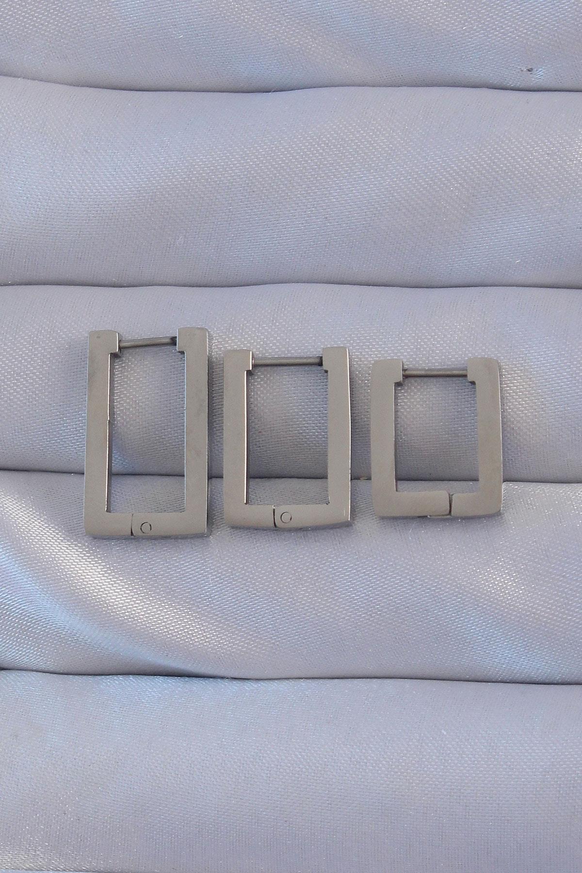 316L Çelik Gümüş Renk Dikdörtgen Küpe Seti