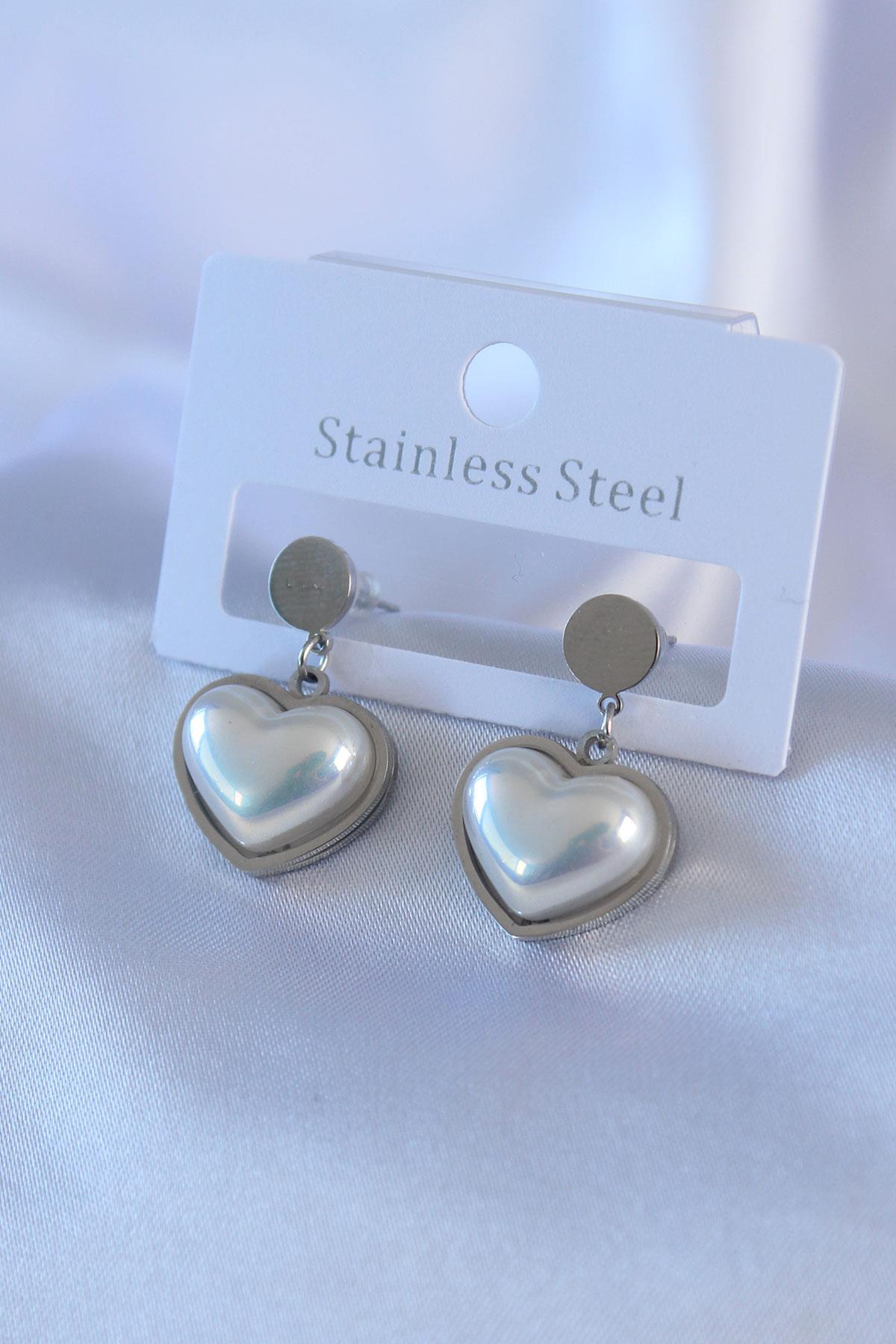 316L Çelik Gümüş Renk İncili Kalp Model Kadın Küpe