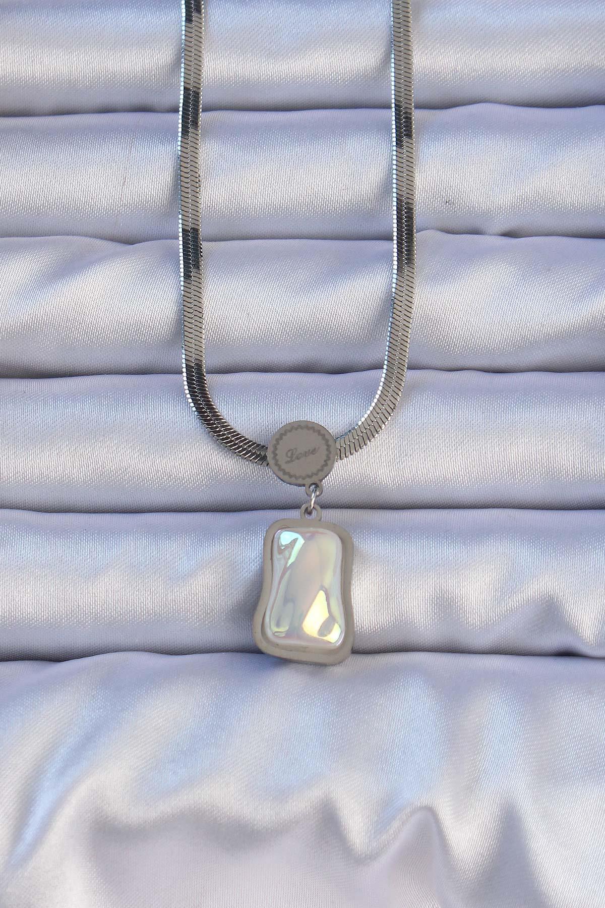 316L Çelik Gümüş Renk İtalyan Zincir Ezme Taşlı Kolye