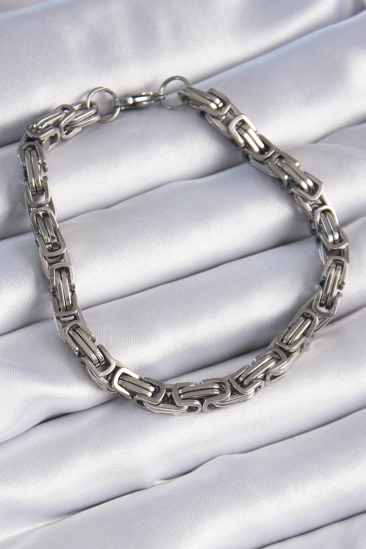 316L Çelik Gümüş Renk Kral Zincir Model Erkek Bileklik