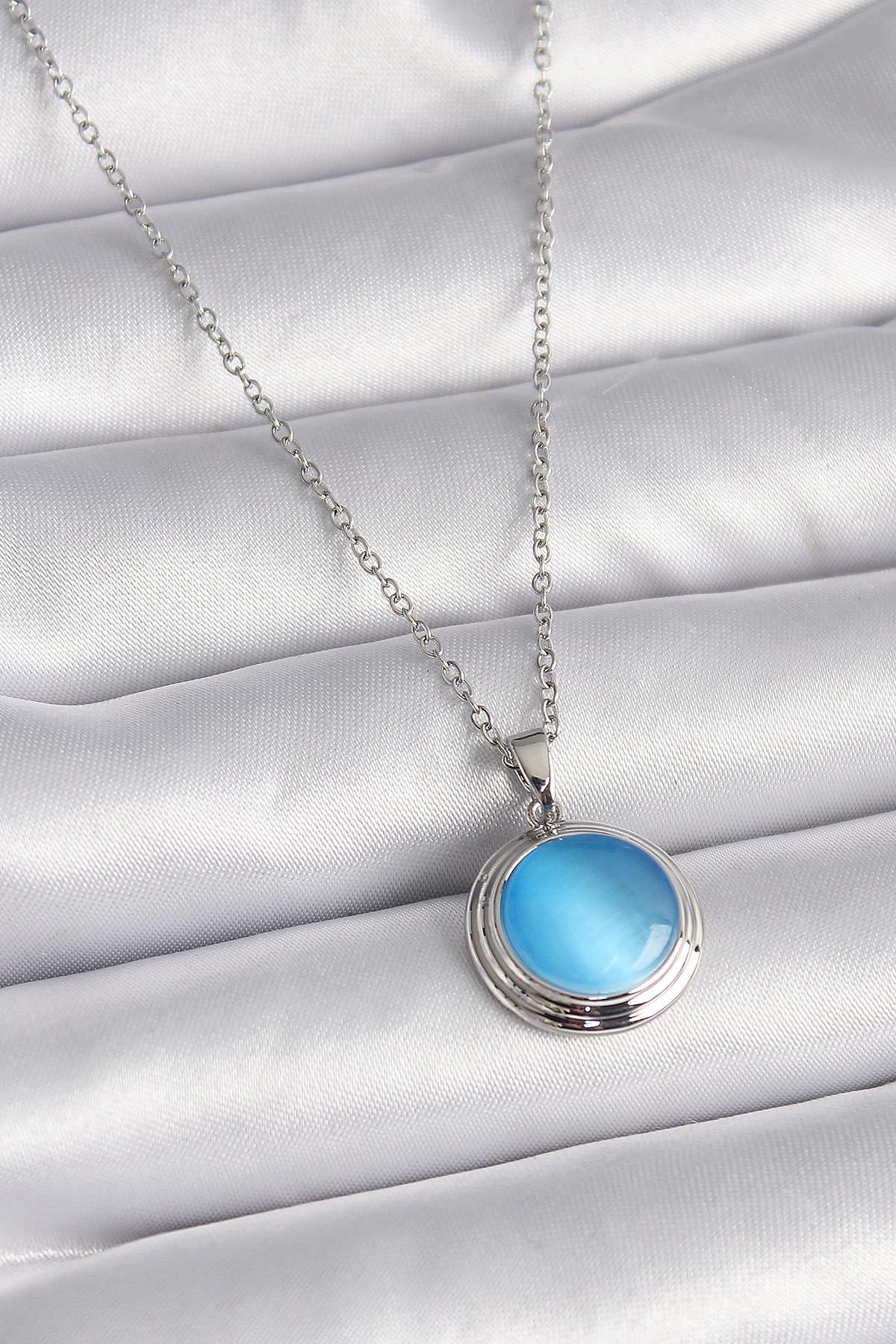 316L Çelik Gümüş Renk Mavi Sedefli Daire Model Kadın Kolye