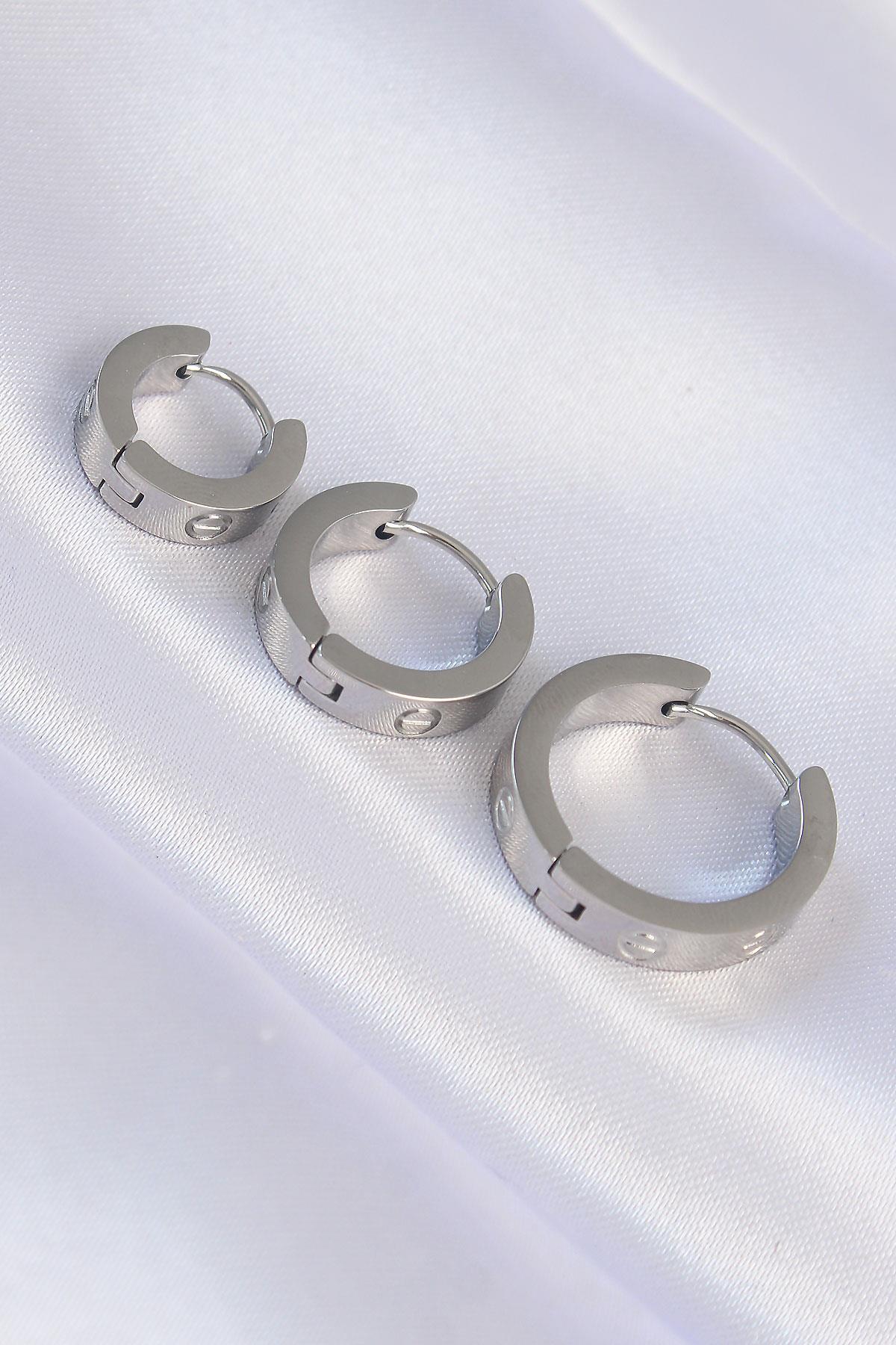 316L Çelik Gümüş Renk Model 3lü Halka Küpe