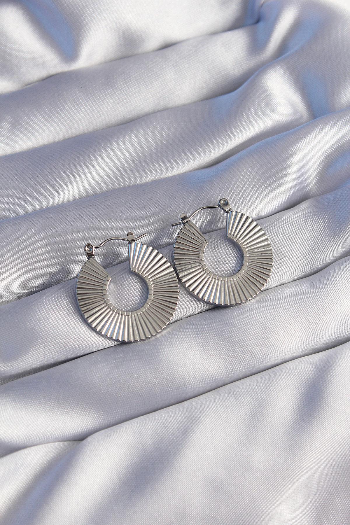 316L Çelik Gümüş Renk Oval Çizgili Plaka Küpe