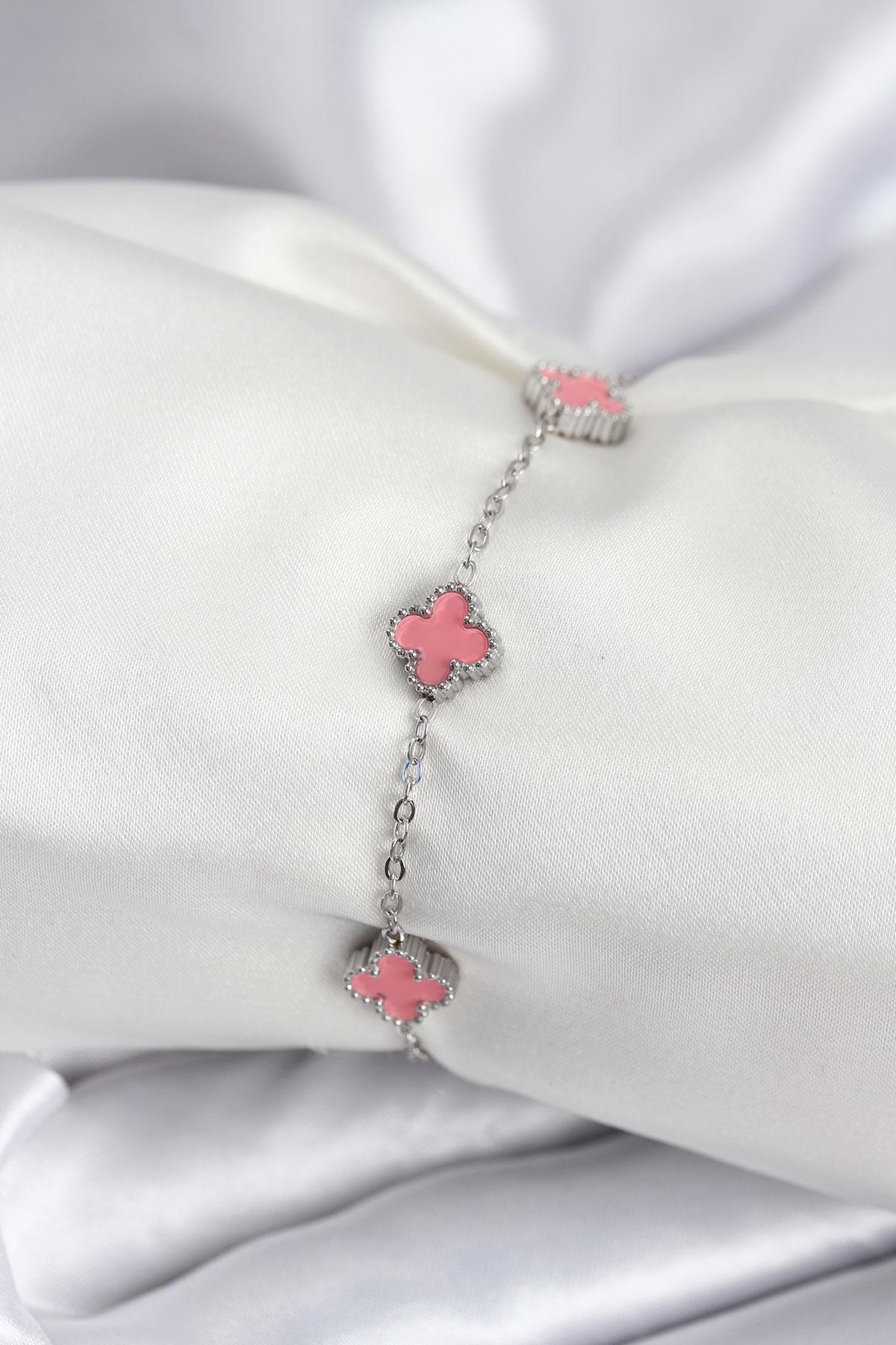 316L Çelik Gümüş Renk Pembe Baby Boy Yonca Kadın Bileklik