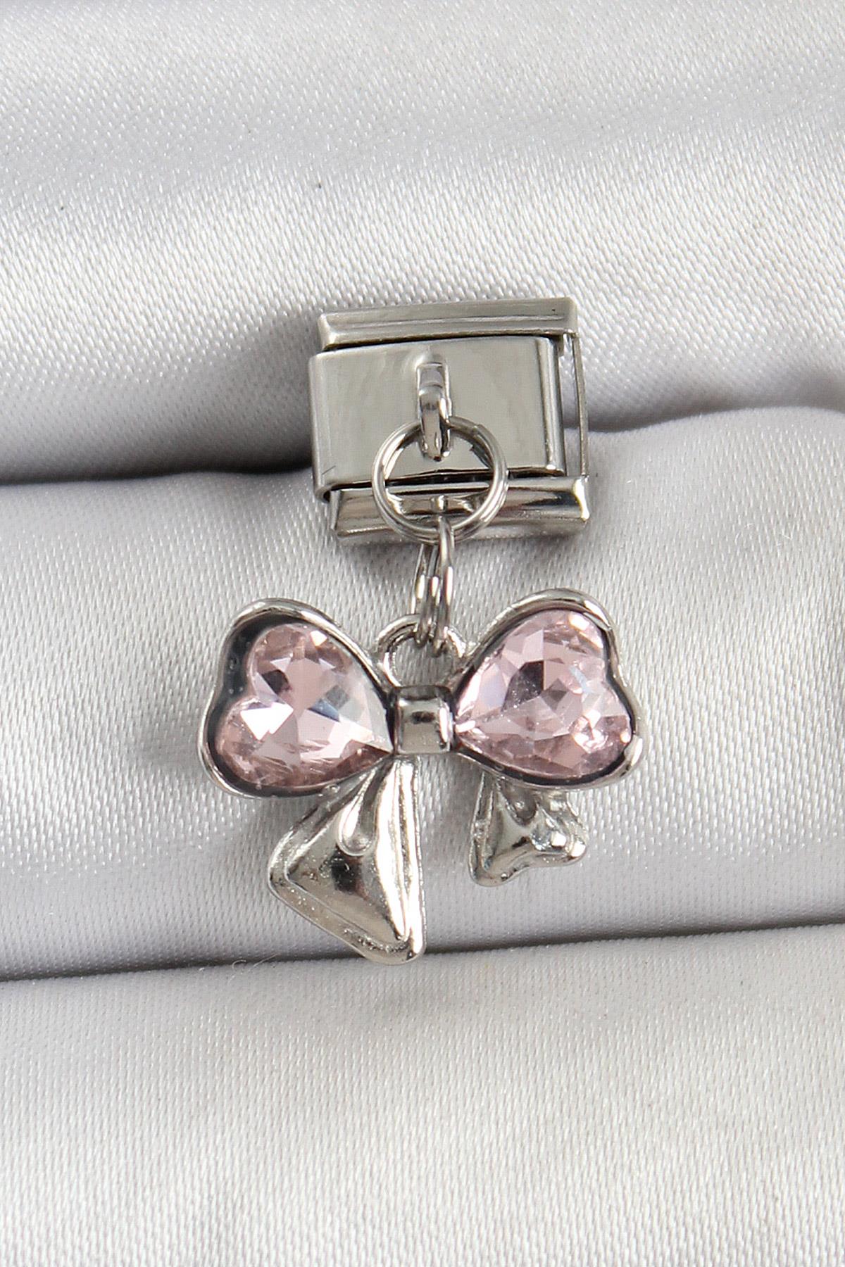 316L Çelik Gümüş Renk Pembe Fiyonk Model Nomination Charm