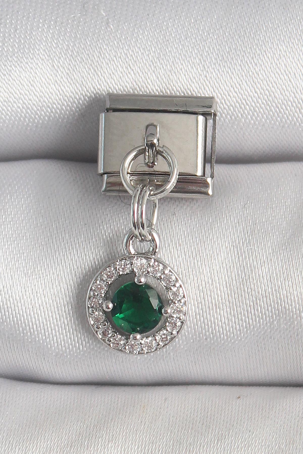 316L Çelik Gümüş Renk Sallantı Yeşil Zirkon Taşlı Nomination Charm