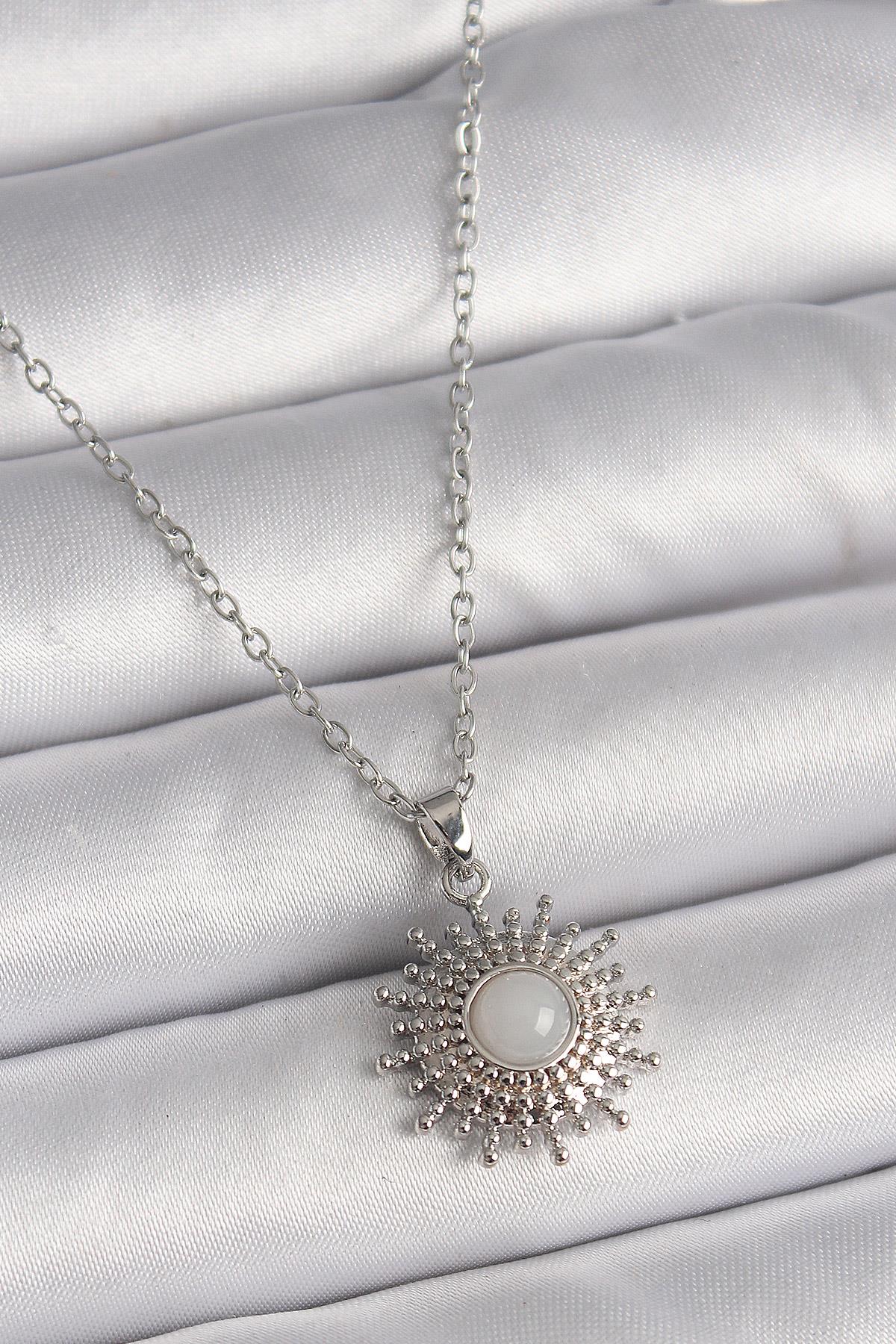 316L Çelik Gümüş Renk Zincir Beyaz Mineli Güneş Model Kadın Kolye