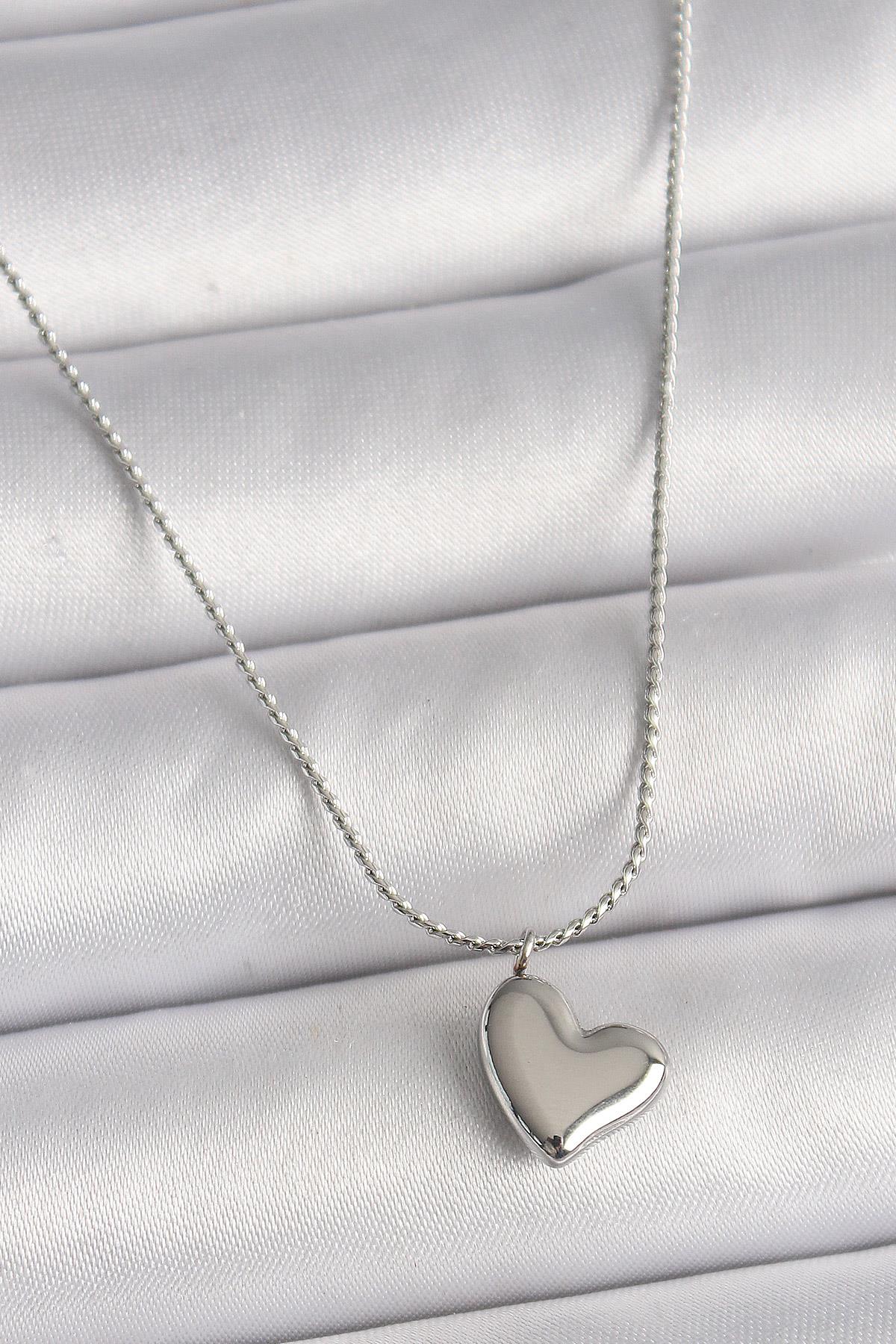 316L Çelik Gümüş Renk Zincir Kalp Figür Kadın Kolye