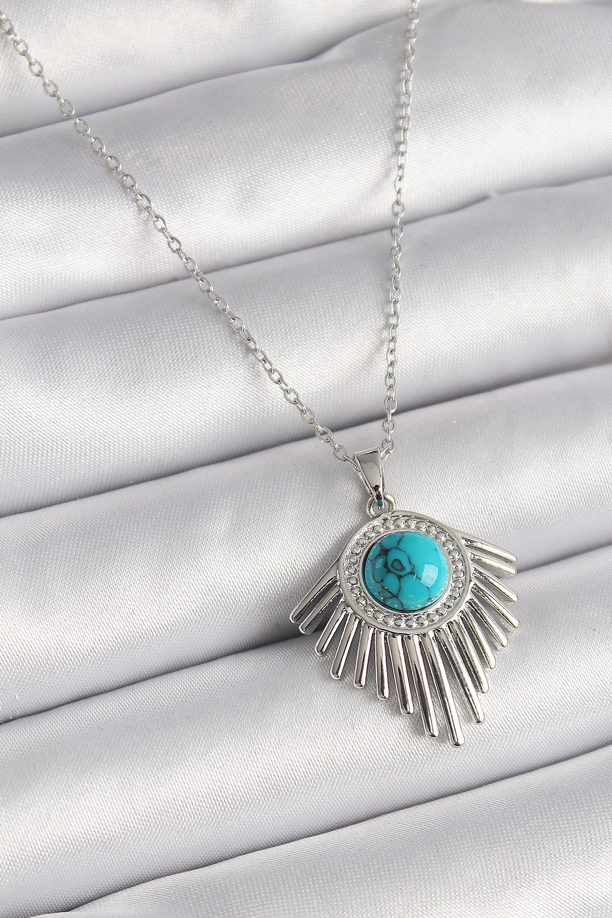316L Çelik Gümüş Renk Zincir Mavi Boncuklu Zirkon Taşlı Kadın Kolye
