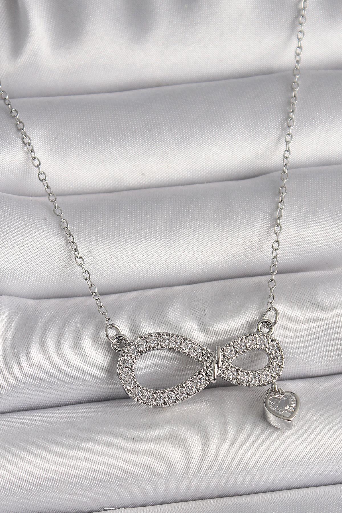 316L Çelik Gümüş Renk Zincir Zirkon Taşlı Sonsuzluk Model Taşlı Kalp Detay Kadın Kolye