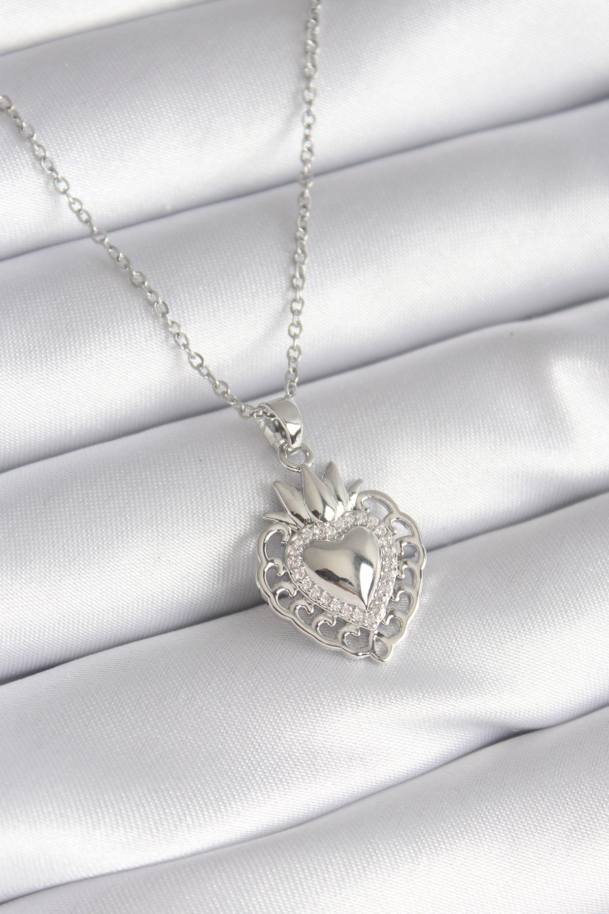 316L Çelik Gümüş Renk Zirkon Taş Detay Taç Kalp Model Kadın Kolye