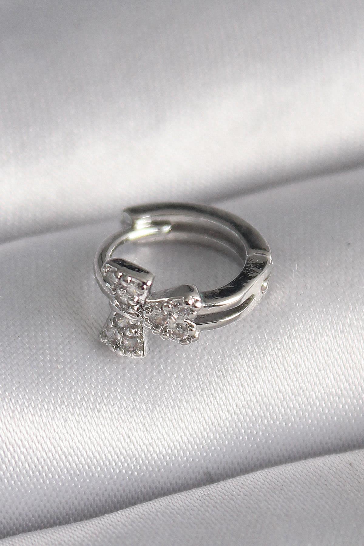 316L Çelik Gümüş Renk Zirkon Taşlı Kurdele Model Tragus Piercing