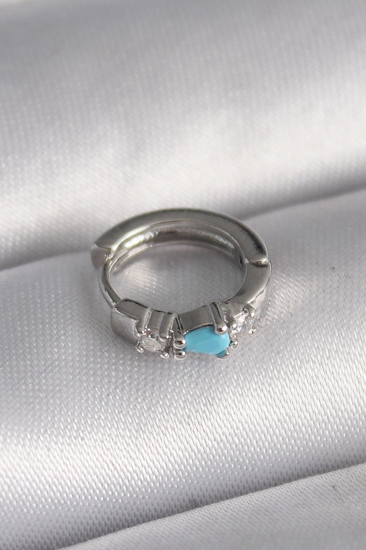 316L Çelik Gümüş Renk Zirkon Taşlı Mavi Boncuk Detay Tragus Piercing