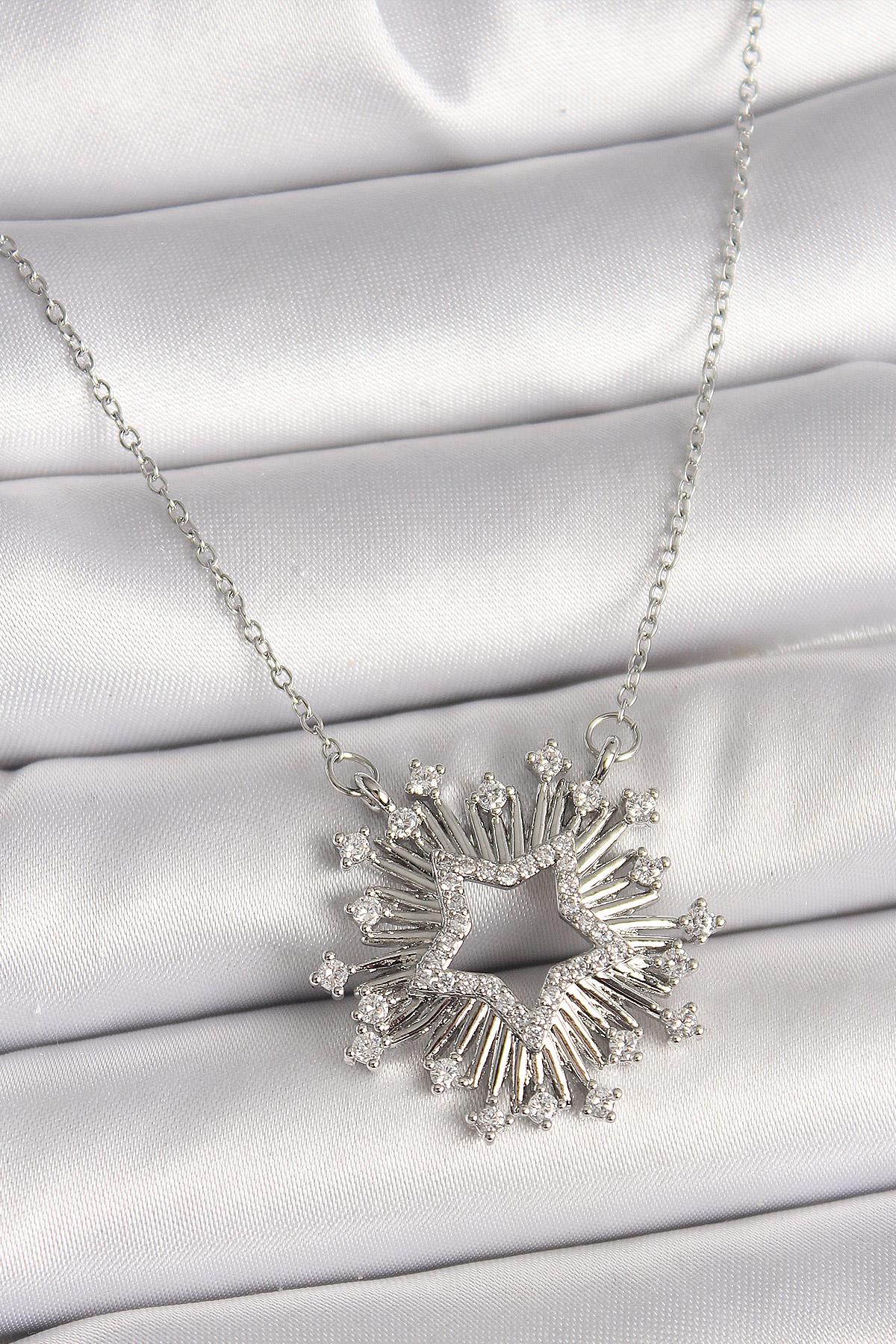 316L Çelik Gümüş Renk Zirkon Taşlı Yıldız Model Kadın Kolye