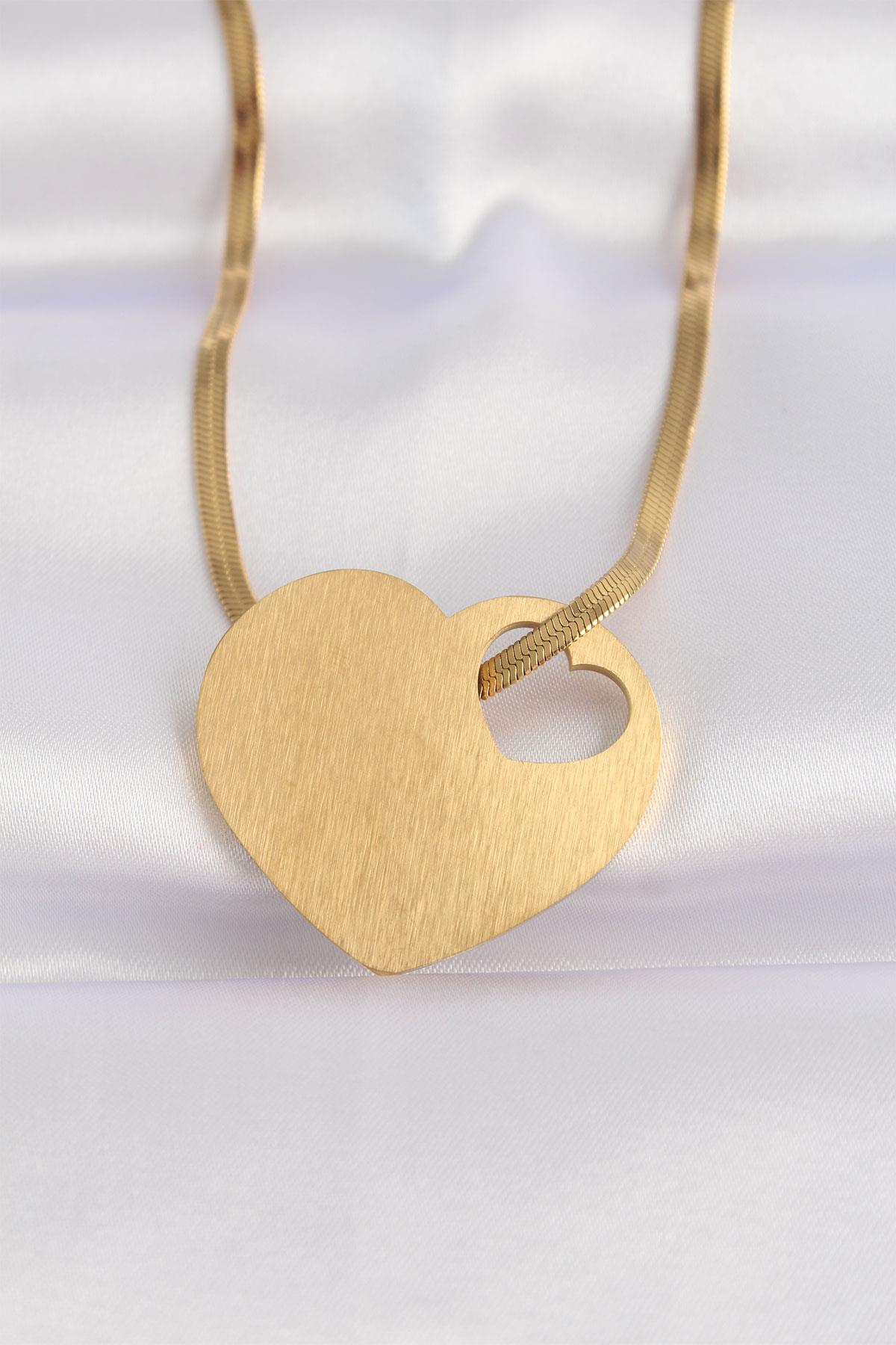 316L Çelik İtalyan Zincir Altın Renk Düz Plaka Kalp Kolye