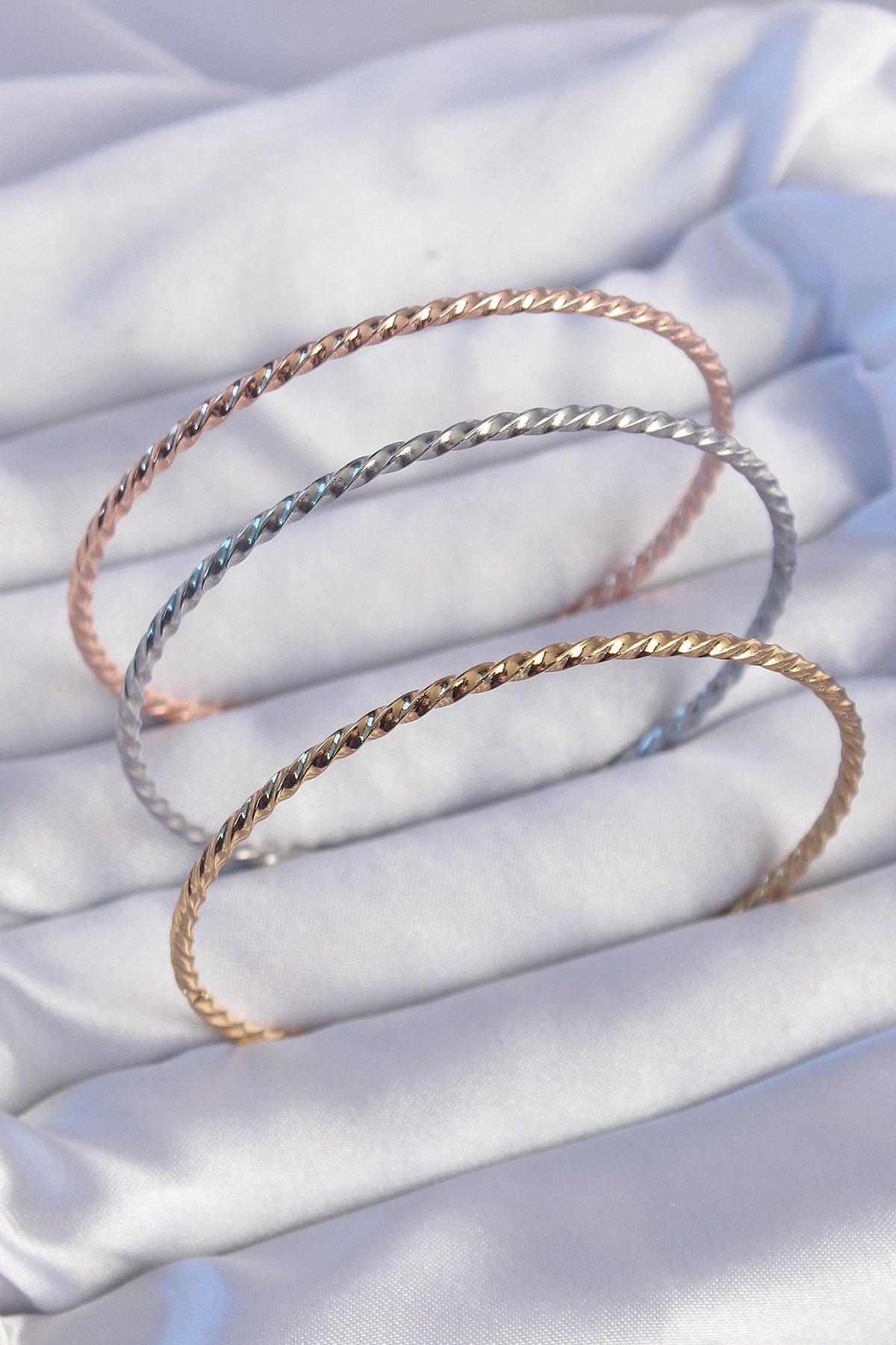 316L Çelik Renkli İnce Burgu Model Ajda Bilezik Seti