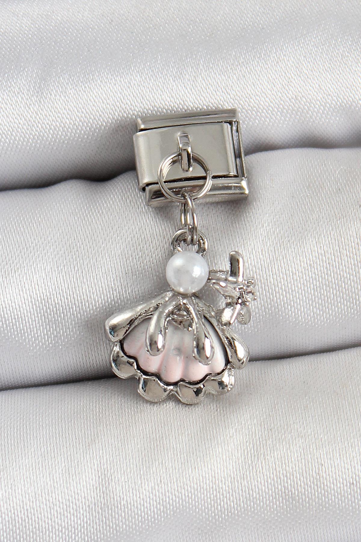 316L Çelik Sallantılı İnci Detaylı İstiridye Model Gümüş Renk Nomination Charm