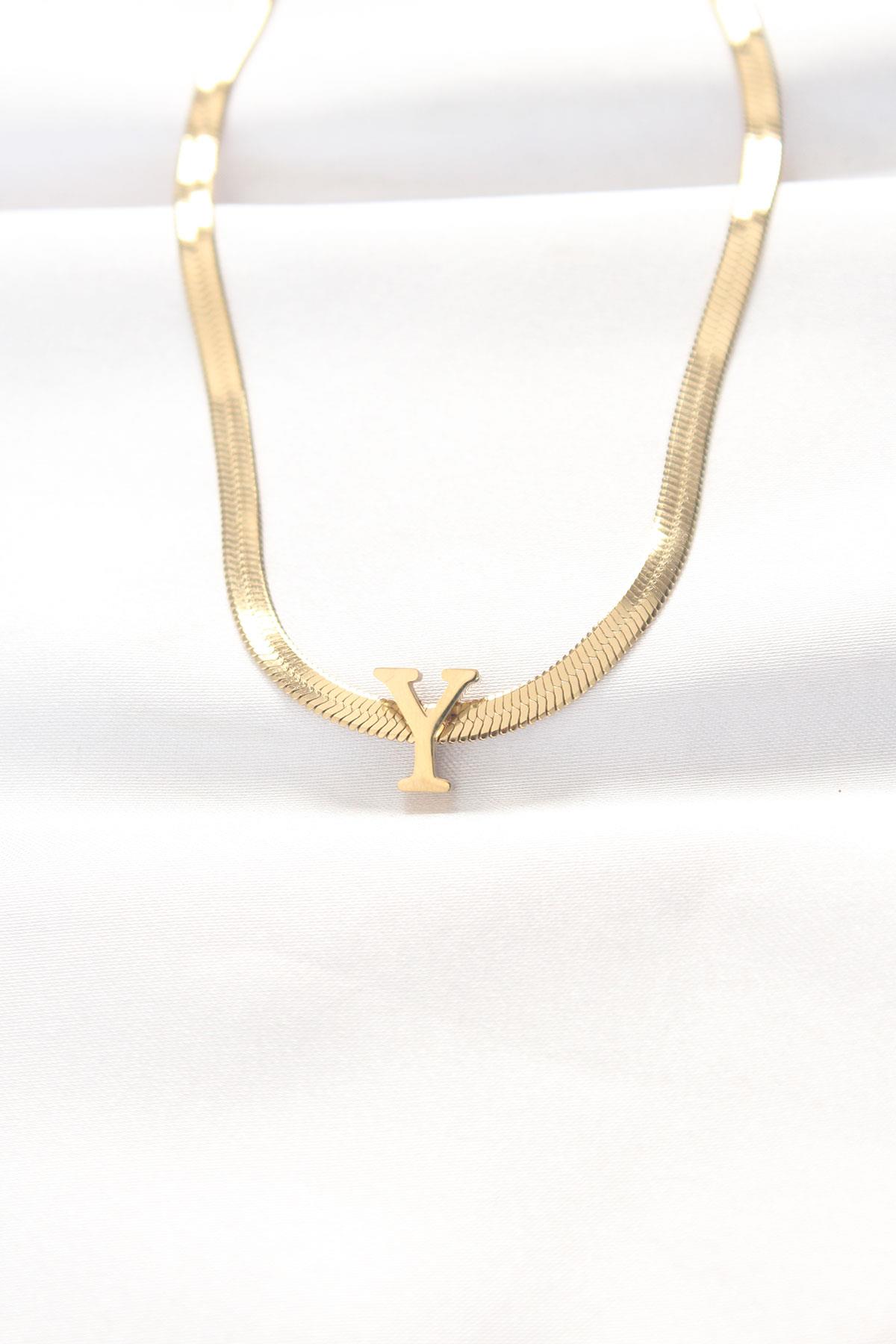316L Çelik Y Harfli Gold Renk İtalyan Zincirli Kolye