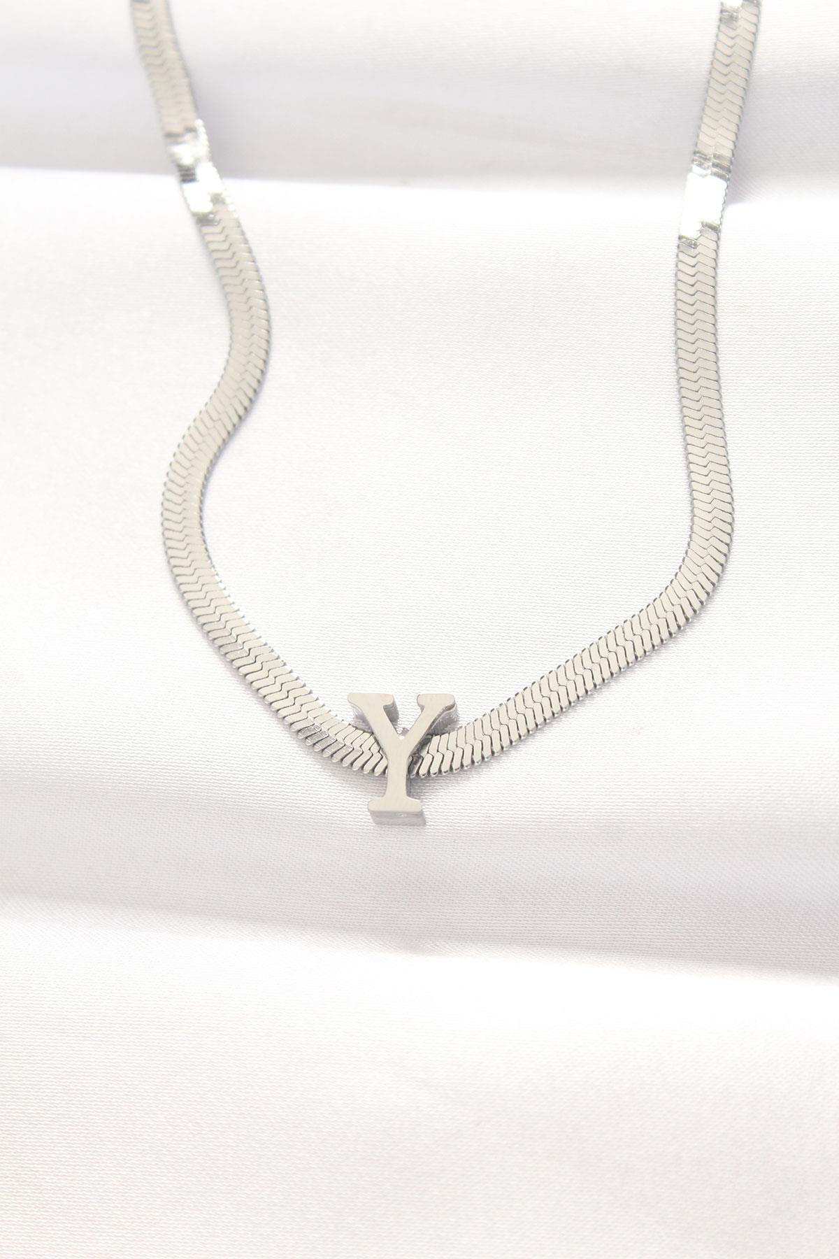 316L Çelik Y Harfli Silver Renk İtalyan Zincirli Kolye