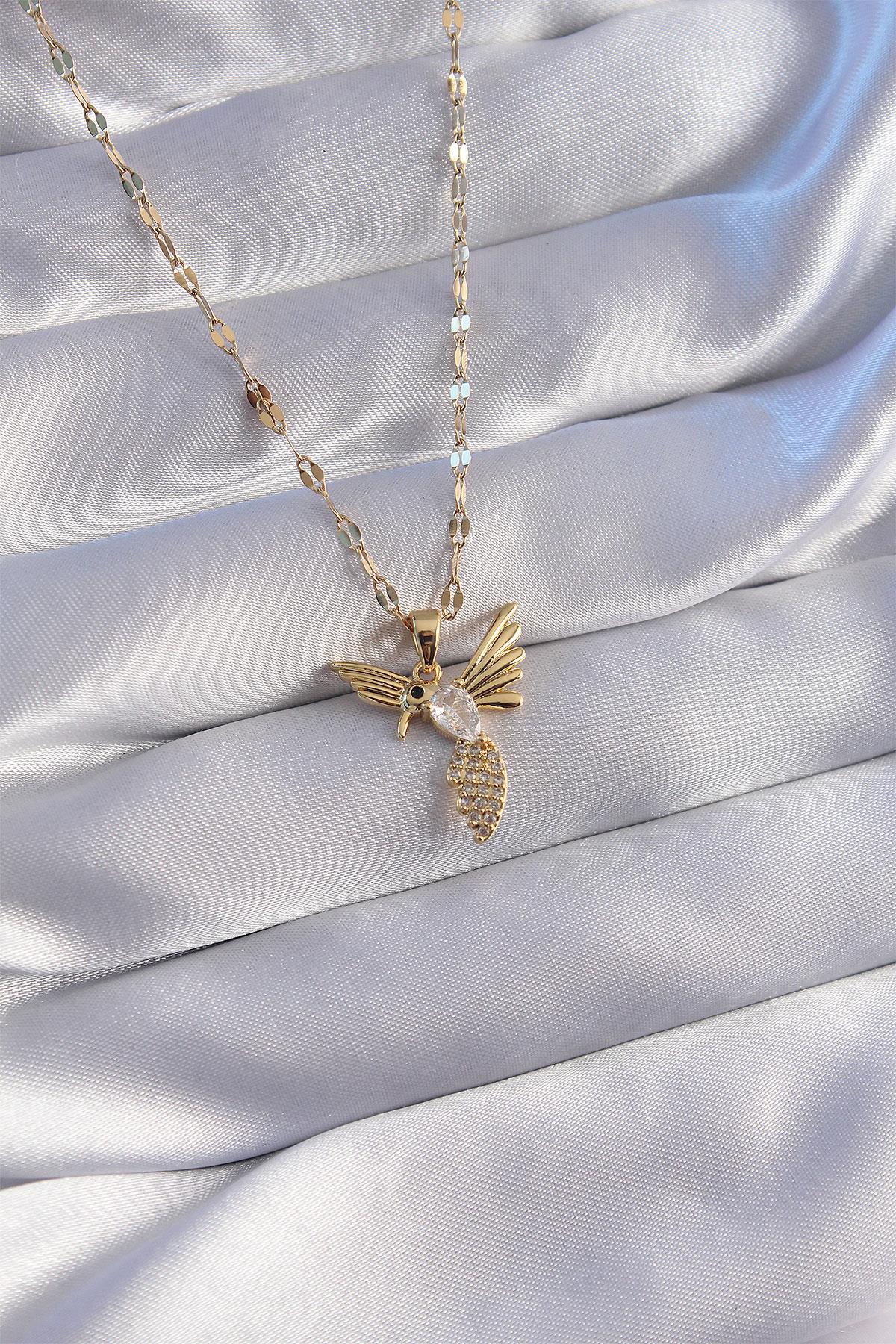 316L Çelik Zincir Gold Renk Zirkon Taşlı Anka Kuşu Figürlü Kolye