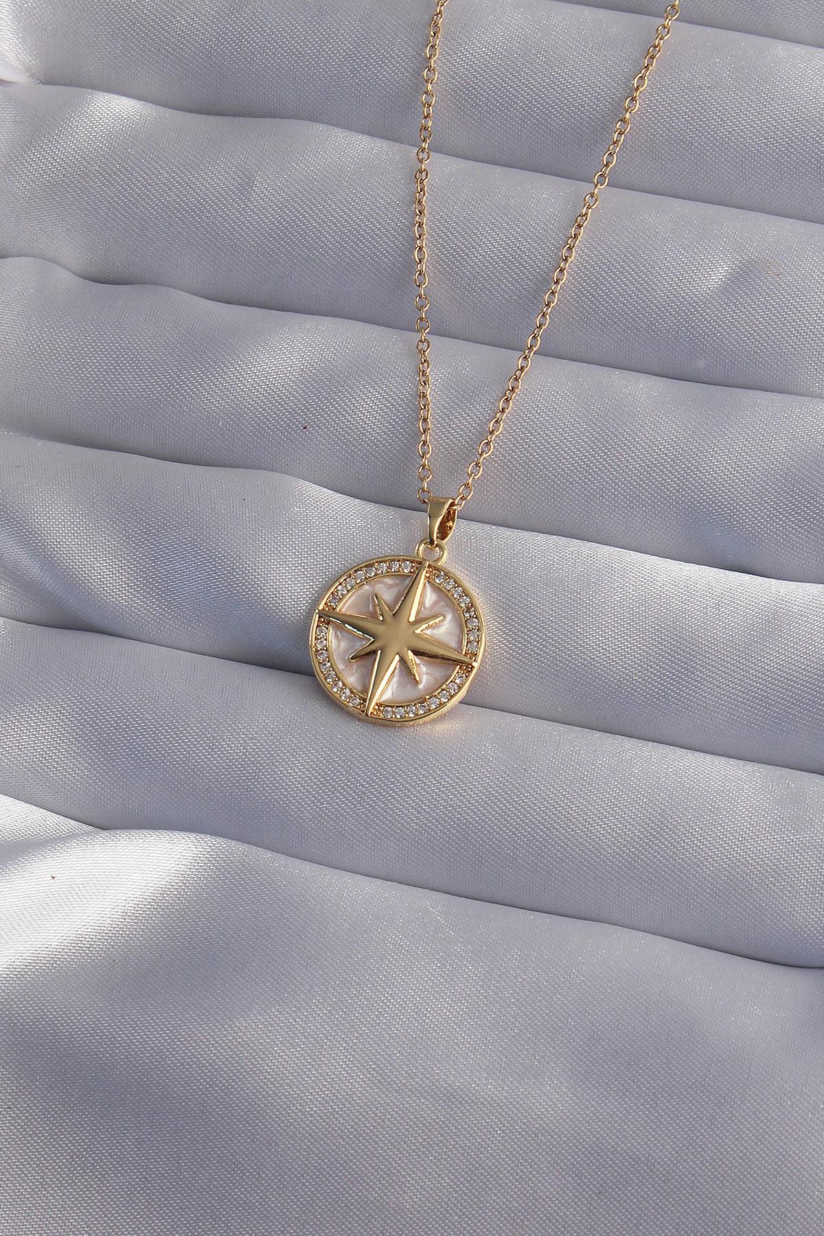 316L Çelik Zincir Gold Renk Zirkon Taşlı Kutup Yıldızı Kolye