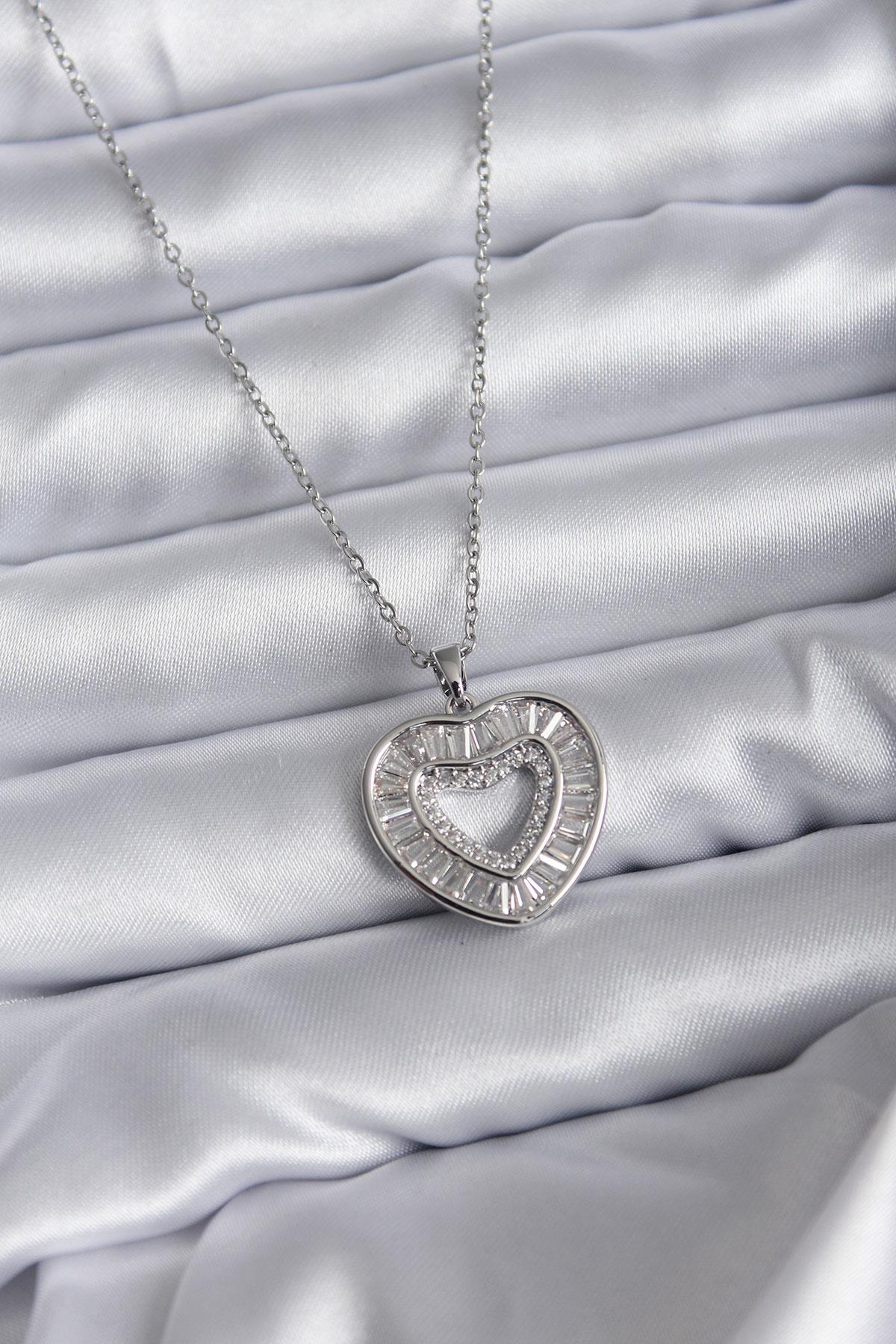 316L Çelik Zincir Gümüş Renk Baget Zirkon Taşlı Kadın Kolye