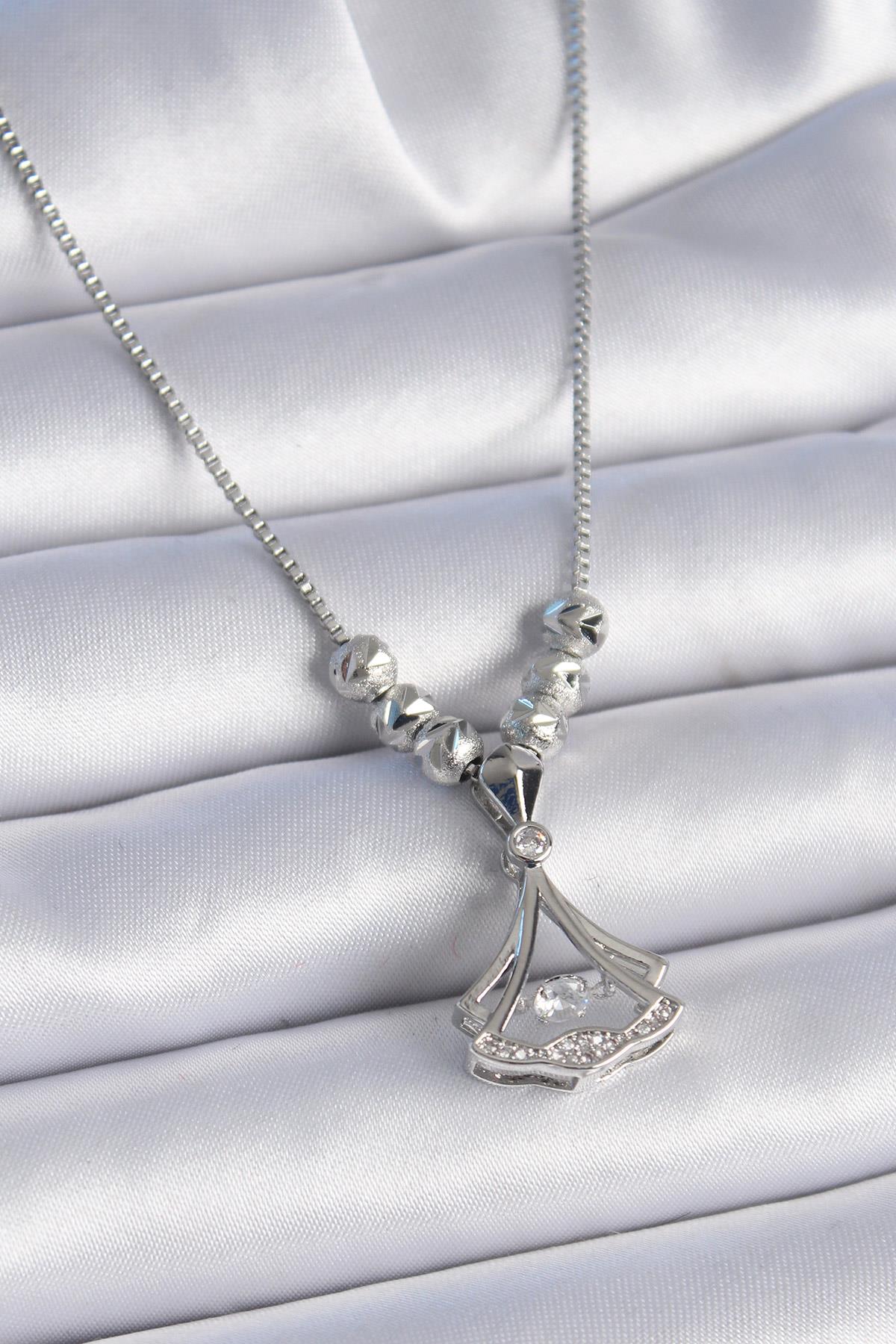 316L Çelik Zincir Gümüş Renk Gingko Yaprağı Model Zirkon Taş Detay Kadın Kolye