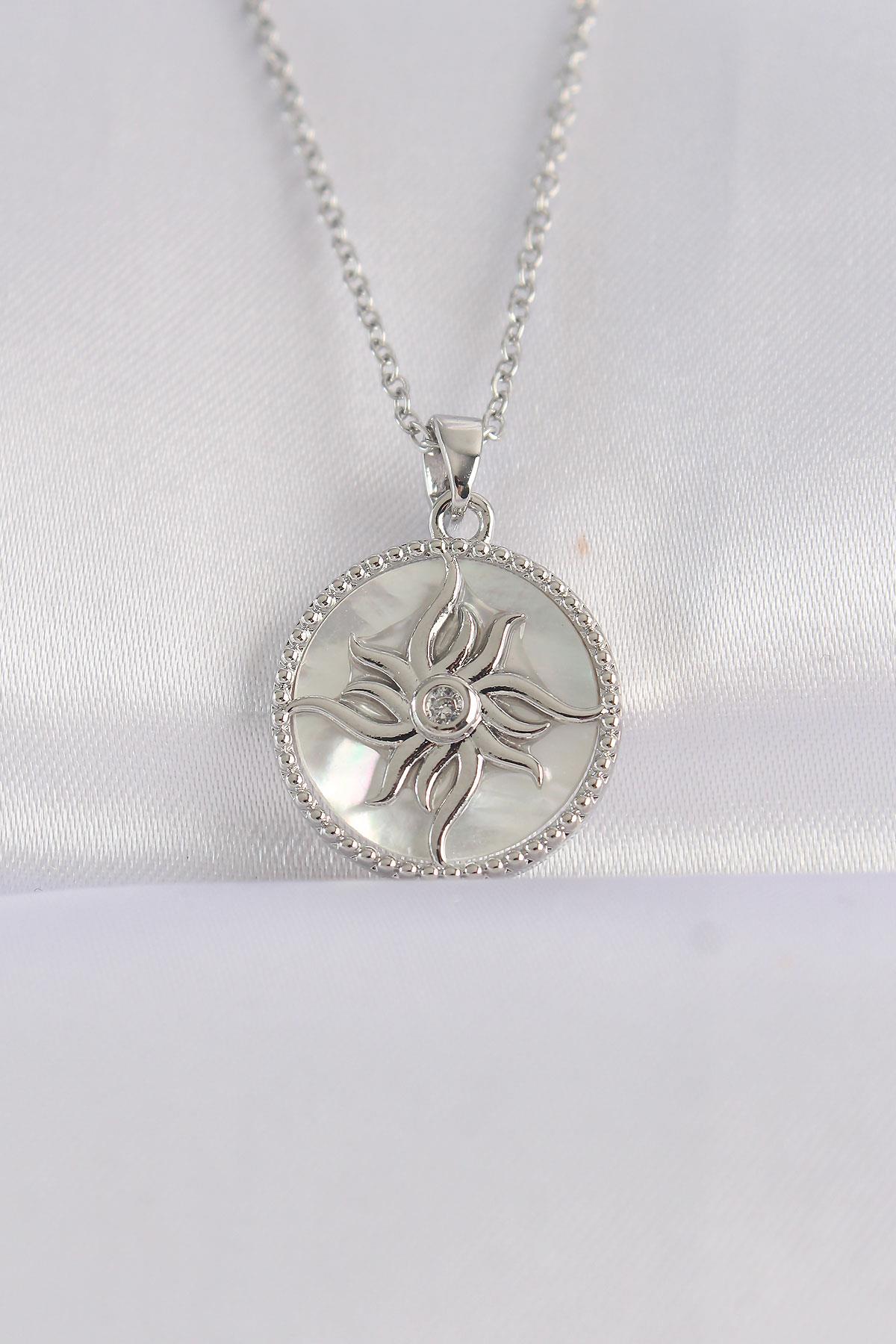 316L Çelik Zincir Gümüş Renk Oval Tasarımlı Güneş Kolye