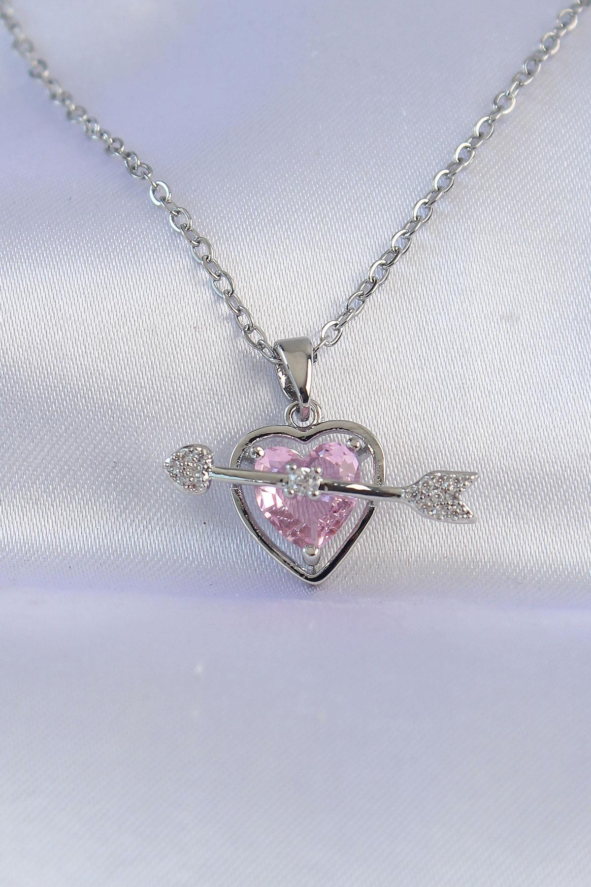 316L Çelik Zincir Gümüş Renk Pembe Zirkon Taşlı Eros Kolye