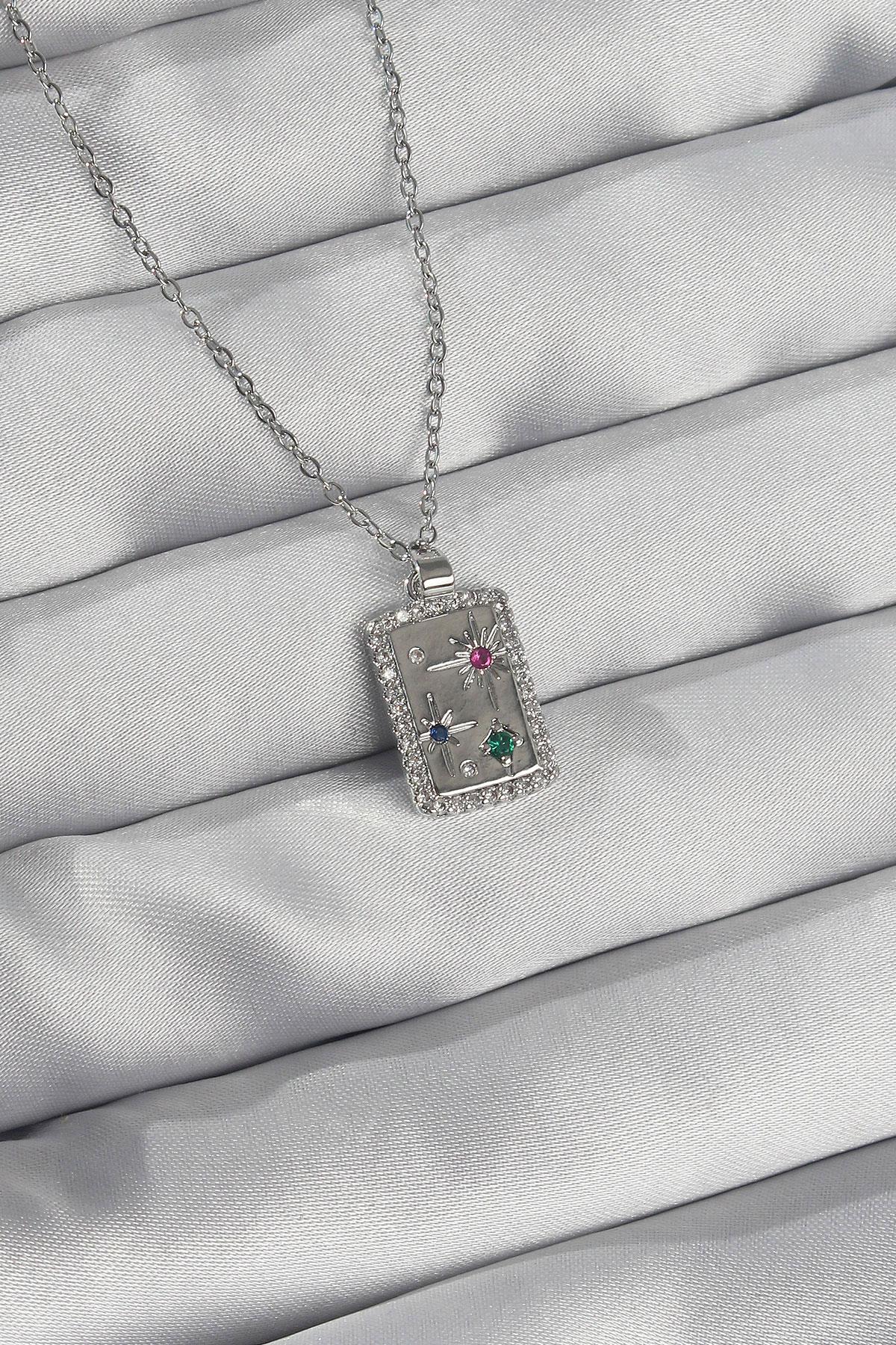 316L Çelik Zincir Gümüş Renk Renkli Zirkon Taşlı Vintage Kolye