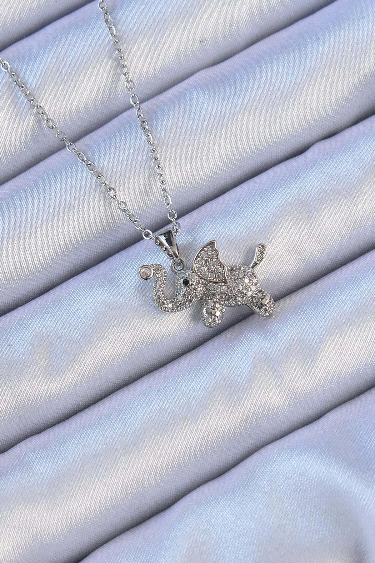 316L Çelik Zincir Gümüş Renk Zirkon Taşlı Fil Kolye