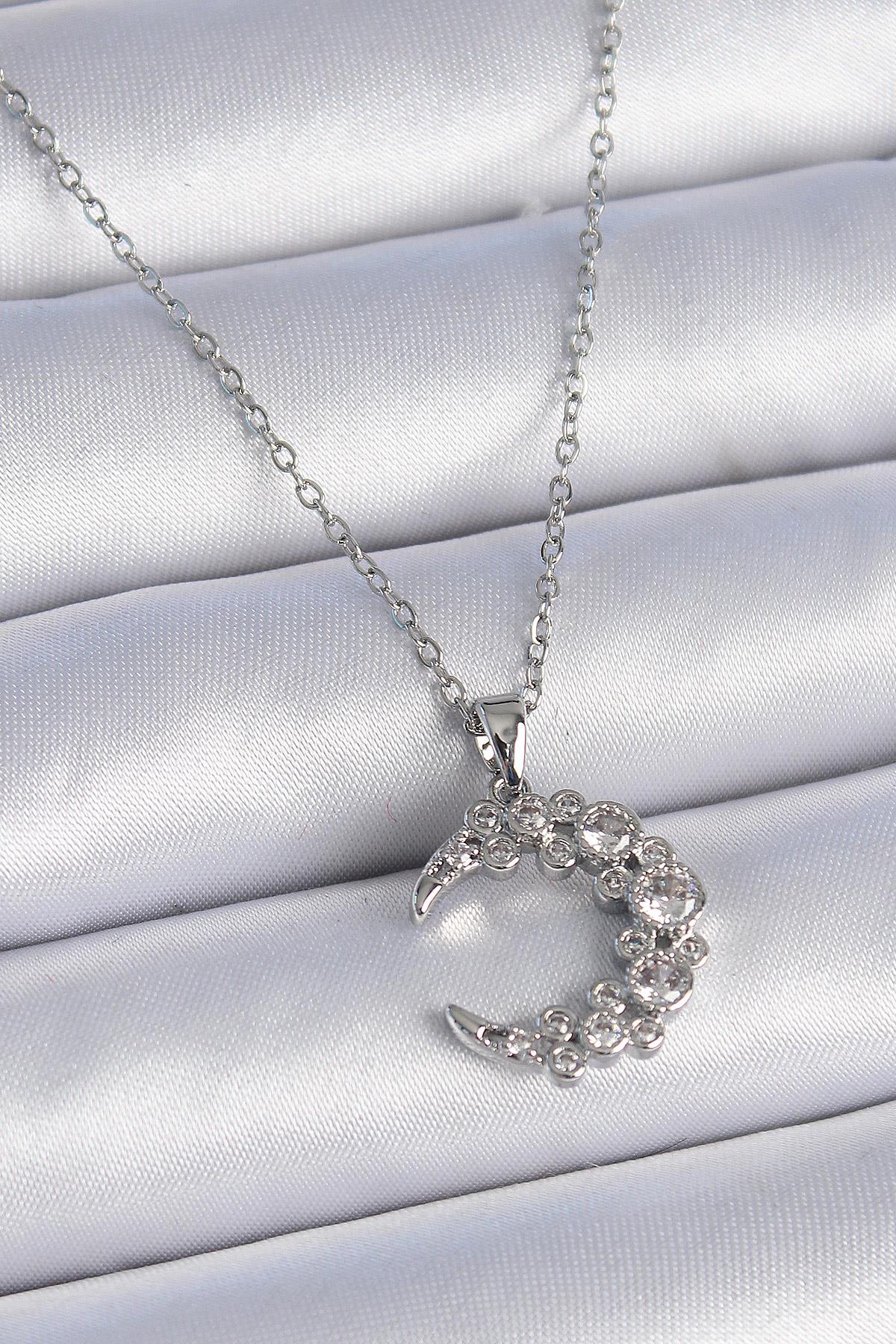 316L Çelik Zincir Gümüş Renk Zirkon Taşlı Hilal Model Kadın Kolye