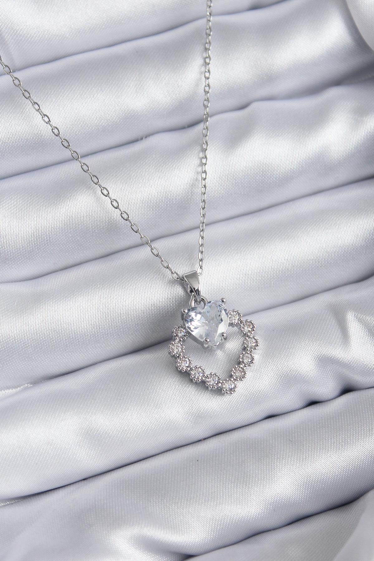 316L Çelik Zincir Gümüş Renk Zirkon Taşlı Kalp Model Kadın Kolye